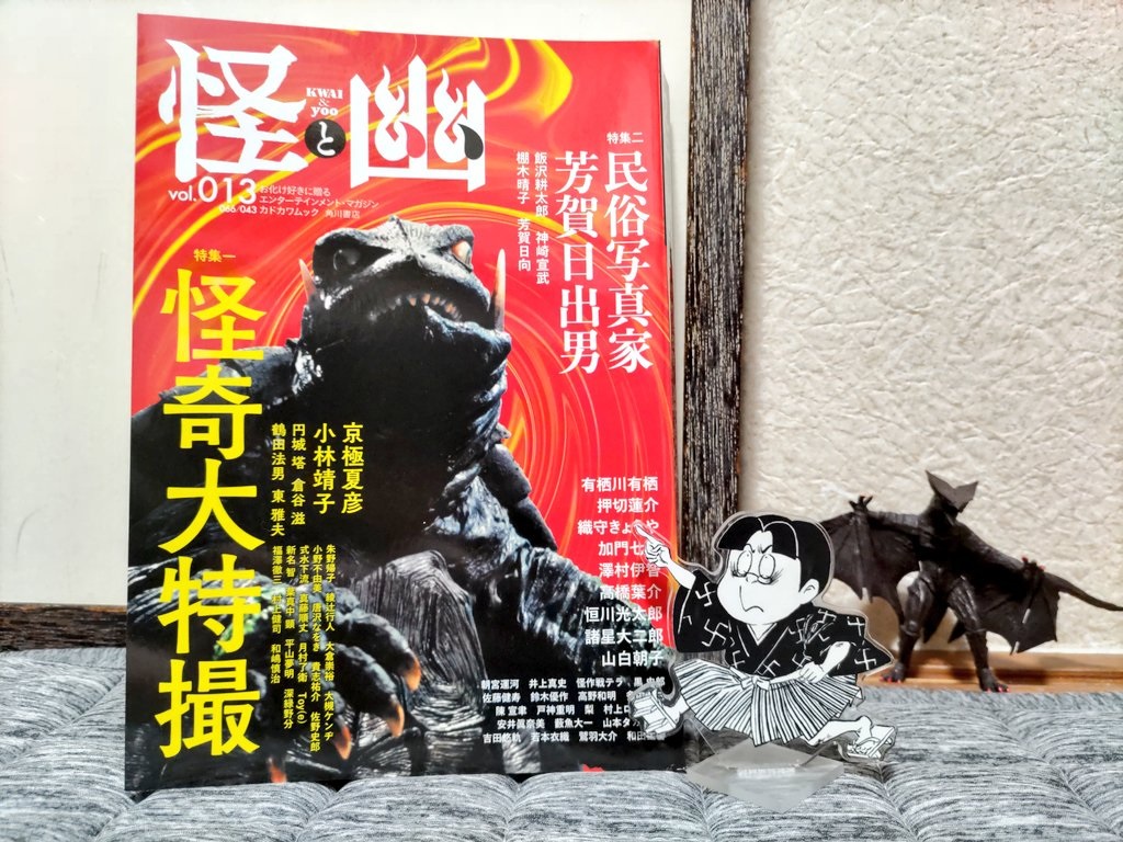 先日発売されました『怪と幽 vol.005』の記事「新時代に見えたるお化け本ブックガイド」にて、怪作戦の『愛知妖怪雑録』をご紹介頂きました! 「日本各地の妖怪を調べる動き」という趣旨の一環として、怪作戦の同人誌にも触れていただきました。記事を書かれました式水下流さん、また『怪と幽』編集部の皆様にも、改めて御礼申し上げます。 『怪と幽』の通販購入はコチラからできます。 https://kadobun.jp/kwai_yoo/new-magazine.html また、ついでに怪作戦の『愛知妖怪雑録』は「メロンブックス」さんや「とらのあな」さんで通販購入できます。 https://www.melonbooks.co.jp/detail/detail.php?product_id=554302 https://ec.toranoana.jp/tora_r/ec/item/040030829616/?sns=tw しかし『愛知妖怪雑録』は(ブログで更新できておりませんが)ラジオで紹介頂いたりと、地味ながら殊勲賞な感じで何よりです(笑)。 また、先の見えない世の中ですが、ボチボチ新刊の作成にも着手いたしました。 いつの完成になるかは分かりませんが、なんとか完成させてお届けできたらと思います。鋭意製作して参りますので、どうぞよろしくお願いいたします。 2017.01.31 Tue 22:19:26 『妖怪写真集第八巻』を日刊SPA! さんでご紹介頂きました!一月も尾張、もとい終わりますね。テラでございます。 …早いような、でも「冬コミからまだ一ヶ月」と思うと、「あれっ?まだそんなけしか経っとらんの??」という気もします。 さて! コンビニでも良く見かける週刊誌『SPA!』をご存知でしょうか。 その『SPA!』さんが運営するニュースサイト『日刊SPA!』さんで『妖怪写真集第八巻』を取上げて頂きました! 独断と偏見で選ぶ「冬コミ奇書・珍書」――妖怪画の物まね写真集、“幻覚茶”の精製方法、軍師・参謀を志す人のための指南書まで 掲載から5日経った本日1/31(火)時点で、サイト内記事ランキング五位! なかなか頑張ってるんじゃないでしょうか(笑)。 といっても、別にウチの本だけの記事ではなく、八種の奇本珍本を取上げた記事が五位なのですけども。 しかし、まさかトップバッターで取上げて頂けるとは思いませんでした(笑)。 まぁ表紙がインパクトありますからね。コレをトップに持ってきた方が人目を引くかも?…なんて判断だろうか、と推測してます。 こうして長々と八巻までも作り続けてきた「妖怪写真集」シリーズですが、ニュースサイトさんで取上げていただけるに到るとは、嬉しい限りですね。 これでSPA!さんに 「コミケ屈指の怪書 といえるかも知れない」 と認定いただきましたので(笑)、これからも馬鹿馬鹿しく、くだらない、「同人誌らしい同人誌」として作り続けていきたいですね。 2016.12.08 Thu 20:59:56 『怪』49号のコラムにて『妖怪写真集』を取上げて頂きました。うおお12月ですね年末ですねコミケですね。 紛うことなきテラでございますよ。 はい! 本日12/8(木) 世界で唯一の妖怪マガジン『怪』49号 が発売された訳ですが… 妖怪絵師 東雲騎人先生のコラム「妖怪の楽しみ方」にて、怪作戦の『妖怪写真集』とその撮影会を取上げて頂きました!うおおお!! 215ページでございます。 あくまでも掲載されているのは東雲先生のコラムでございますので、いくら目次を探しても「怪作戦」の文字はございません(笑)。 アマゾンだとこちら。 冬コミ新刊作成用の撮影会を、東雲先生含む妖怪馬鹿(褒め言葉)の皆様方と行ったのですが、その時の事を取上げて頂いたのでありました。 いやいや、『怪』の紙面に「怪作戦」の文字が載る日が来ようとは。ありがたやありがたや。改めて東雲騎人先生と『怪』編集部の皆々様に、心より御礼申し上げます。 さて! 肝心の冬コミ新刊『妖怪写真集第八巻』! 作ってます! 表紙まで出来ました! こへーじです!北斎でございます。 今回は浮世絵もやっちゃうゾ!…な八巻でございます。 『怪』のコラムでも取上げていただけた事ですし、なんとしても完成させて冬コミにて配布いたしたいと思います。 3日目東Q08a『怪作戦』です! 何卒よろしくお願いいたします! |