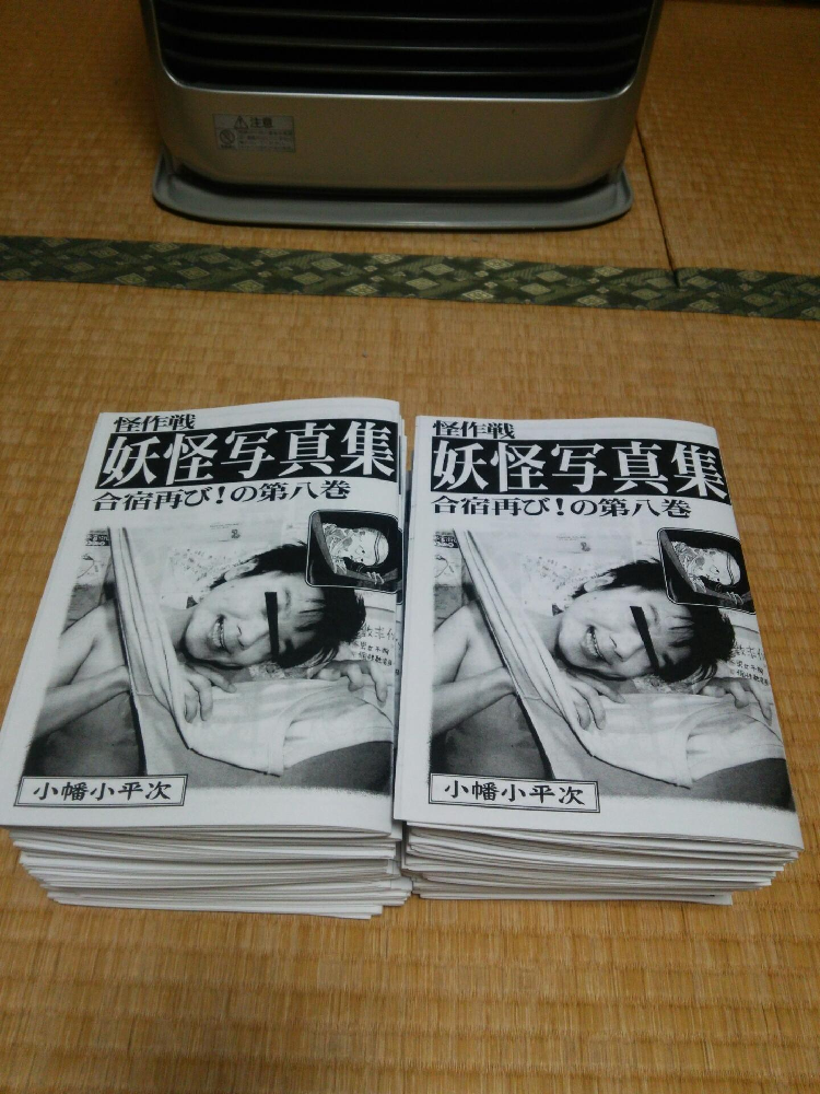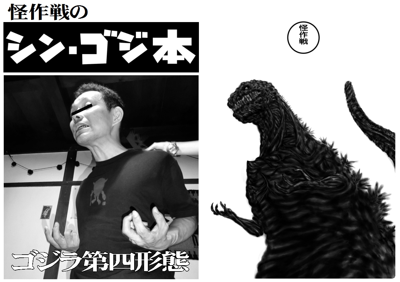 本年もより一層のご支援を賜りますよう、三兄弟一同心よりお願い申しあげます。 はい、ということで、約1年ぶりの登場となります。 怪作戦の桂でございます。 「何故N○Kは第2段階から出さない!」いや、失礼しました。・・・去年の話は置いておいて。 昨年はいろんな事を「好きに」やらさせていただきました。 その経験が活かせる年にしたいなぁ・・・と思っております。 とはいっても詳しい予定は 「皆さまの妖怪ライフを笑いで支える」を合言葉にしている怪作戦、今年も死なない程度に頑張ります! 今年も怪作戦をどうぞ宜しくお願い致します! 2016.12.29 Thu 21:20:30 C91冬コミ頒布予定詳細上京準備しております。雨は大丈夫のようで何よりですね。 テラでございます。 冬コミ頒布予定のまとめです! 怪作戦 3日目12/31(土) 東2ホール Q08a *Question、名古屋のマルハチ、アンサー!…とでも覚えていただけたら。 コミケWEBカタログへのリンクです。 https://webcatalog-free.circle.ms/Circle/13027268/ サークルカットはこちらですが、新刊は写真集です。 【頒布予定】 【コミケ新刊】 『妖怪写真集第八巻』400円 今度は合宿だ! ゲスト様も大集合で、またしても御馬鹿な妖怪写真を撮りました。 『怪作戦のシン・ゴジ本』300円 更にゴジラだ! 妖怪写真集で培った(?)技術を駆使してシンゴジ写真も撮っちゃいました。 『妖怪写真集 お蔵出し没ネタ編!』200円 もう、本編で八巻ですからね…。 没ネタだけで一冊作っちゃいました! *他イベントでは頒布済みですが、コミケでは初売りとなります。 【既刊】 『愛知妖怪画談第一巻~第五巻』400~800円 既刊の愛知妖怪本もお持ちします! コミケに来られる全愛知県民にお買い上げ頂きたい(笑)! 面白詳しく愛知の妖怪を特集しております。 【妖怪リクエスト】 今回もやります! お好みの妖怪をコミケ期間中に扇子にお描きします! 2500円 【追記・手描き一点物扇子】 蘭陵亭作 波山 3500円 酉年ですしおすし! 以上でございます。 では、是非コミケ当日よろしくお願いいたします。 また、良いお年をお迎えくださいませ。 2016.12.27 Tue 21:22:48 冬コミ新刊『怪作戦のシン・ゴジ本』も完成しました!2016.12.22 Thu 22:43:46 冬コミ新刊『妖怪写真集第八巻』完成しました!FGO七章熱くて面白かったけど長かった…。 テラでございます。ちょっとアイコンも(スーツ的な意味で)シンゴジモード。 冬コミ新刊その一。『妖怪写真集第八巻』完成しました! ここで告知兼お知らせなのですが、今回から『妖怪写真集』のコピー製本方法を変更し、また、こちらは400円での頒布とさせていただきます。 これまでは手作業で製本して原価を抑えて、表紙も色上質を使っていたのですが、結構手間のかかる製本をしておりまして、ちょっと時間の確保が難しく、製本まで全てコピー機にお任せ方式に変更いたしました。ご了承いただけますよう、お願い申し上げます。 …その分、もう一冊作ってますから! 『怪作戦のシン・ゴジ本』鋭意制作中でございます。 多分直前まで…。 ブログタイトルにもしておりますが、三日目東Q08a「怪作戦」にてよろしくお願いいたします! 2016.12.11 Sun 21:13:46 冬コミ新刊「シン・ゴジ本」も!寒いですね。テラでございますよ。 さて、冬コミ原稿進めている訳ですが…実は今回、『妖怪写真集第八巻』以外にも新刊出しちゃいます(予定)! しかも…怪作戦初の…? 小説!? …ではなくて(笑)。 *これは妖怪写真集用に描いた「スローロリス」イラストを流用したジョーク告知です。 怪作戦初の…?? シン・ゴジ本! 二次創作! …二次創作よね…これ?? これまでもパロディ表現は山盛り盛り込んで来た訳ですが、特定の作品のファンブック的な冊子は初のはず。(もちろん、扇子とかの単発の作品は作ってますね) 何とか同時刊行するべく、製作進行中です。一応、ギリギリ間に合う、はず。 『妖怪写真集第八巻』ともども、是非ともよろしくお願いいたします。 …さー、退路も絶ったし覚悟決めて作りますよ! 2016.12.08 Thu 20:59:56 『怪』49号のコラムにて『妖怪写真集』を取上げて頂きました。うおお12月ですね年末ですねコミケですね。 紛うことなきテラでございますよ。 はい! 本日12/8(木) 世界で唯一の妖怪マガジン『怪』49号 が発売された訳ですが… 妖怪絵師 東雲騎人先生のコラム「妖怪の楽しみ方」にて、怪作戦の『妖怪写真集』とその撮影会を取上げて頂きました!うおおお!! 215ページでございます。 あくまでも掲載されているのは東雲先生のコラムでございますので、いくら目次を探しても「怪作戦」の文字はございません(笑)。 アマゾンだとこちら。 冬コミ新刊作成用の撮影会を、東雲先生含む妖怪馬鹿(褒め言葉)の皆様方と行ったのですが、その時の事を取上げて頂いたのでありました。 いやいや、『怪』の紙面に「怪作戦」の文字が載る日が来ようとは。ありがたやありがたや。改めて東雲騎人先生と『怪』編集部の皆々様に、心より御礼申し上げます。 さて! 肝心の冬コミ新刊『妖怪写真集第八巻』! 作ってま