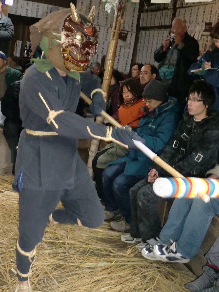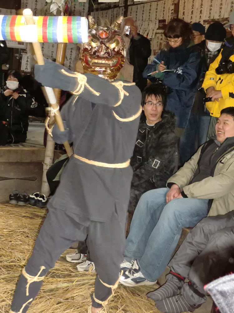 京都:京都市上京区 大将軍商店街 2013.03.20 Wed 22:29:01 妖怪絵馬100枚展 怪作戦も出品中!おこんばわん。 皆様、祝日を休日をお過ごしでしょうか? 私は出勤でしたよ!テラでございます。 いよいよ本日より始まりました 「妖怪絵馬100枚展」、怪作戦も出品しておりますよ! 「妖怪絵馬100枚展」や、開催場所「Art Labo深川いっぷく」さんの詳細はこちら。 http://shikimizu.blog7.fc2.com/blog-entry-144.html http://www.fukagawa-ippuku.jp/ 一部趣旨を引用させていただくと、 「ツイッターの妖怪紹介bot「瓶詰妖怪」より好きな妖怪を選んでいただき、 皆様の思い思いの妖怪を100枚の絵馬に描いて展示するという企画」 でございます。 瓶詰妖怪ボットはこちら。 https://twitter.com/bottle_youkai という訳でこちらの絵馬を出展させていただきました! 桂つかさ作 おとら狐 1500円にて展示販売中!(売れてなければ) 桂つかさ作 二龍松 2000円にて展示販売中!(売れちゃってなければ) 蘭陵亭作 ヤロカ水 2500円にて展示販売中!(売れちゃってなければ) はい、安定の地元愛知押しです(笑)。 どんな妖怪?と思った方は、よかったらこちらの 「愛知おもてなし妖怪隊」サイトをどうぞ! http://aichiyoukwaitai.web.fc2.com/ という宣伝。 …ちょっとマニアックなので、とっつきにくいかも知れませんが…。 この「妖怪絵馬100枚展」は、24日(日)まで開催されています。 関東圏にお住まいの方は是非お出かけくださいませ! っていうか、行きたかったですよ! 2013.03.18 Mon 21:29:40 布川の花祭りに行ってきました。④おこんばわん。テラでございます。 もう、今回で終りますから、まー少々お付き合いくださいましね? 前回、翁の舞まで見て、そろそろ寝とかんと運転がツライと判断して一旦車に退避。で、二時間ほど仮眠してモソモソ起き出したら、ちょうど朝鬼が舞っている所に間に合いました! 茂吉鬼さん。一応この舞の主役(でいいはず)。 この面は「鼻たらし」でいいはず。 …鬼…かしら(笑)? どちらも茂吉鬼の伴鬼でいいはず。 茂吉っぁんは鉞(まさかり)でなく、槌を持ってます。 アップ。 しかし、インパクトのある顔です。鼻たらしさん。 釜の周りを舞ってます。 こうして無事朝鬼も見ることができました。 お次は獅子舞。 我ながらなかなか良く撮れた気が。 鎮めの神事。 Mr.カラテではありません(古い)。 はい!テラによる布川花祭りレポートは以上で締めたいと思います!長々とお付き合いいただきまして、ありがとうございました。 いやー、ハードでしたけど、色んな鬼さんも出て来て飽きないですね。 特に周囲に混ざって「てーほへてほへ」と唱和していると、どんどんトランスしてきます。また、他の地区の花祭りにも行きたいですね。 2013.03.13 Wed 22:58:36 布川の花祭りに行ってきました。③2013.03.09 Sat 21:11:42 布川の花祭りに行ってきました。②はい、北海道以外の皆様、暑いですね! テラでございますよ! なんか、花祭りに行ってきたらホントに春が来ちゃった感じがしてます。 (本来は11月のお祭りですけどね) さて!能書きは兎も角前回の続きです! 舞はひたすら続きます。 んで、深夜四時ごろ、榊鬼の伴鬼さん登場。 黒っぽいですけど、青鬼の面みたいです。 「古よりの花祭り」によると。 テーホヘテホヘ アップ。おそがい。 更に榊鬼の伴鬼さん登場。 これは火の鬼の面みたいです。 なんかお尻にも草鞋?つけてたんですね。 撮影時は気付かなかった。 これは結構綺麗に撮れたかな。 撮影環境も苛酷なのでなかなか難しい。 更に更に引き続いて小さい伴鬼さんも登場! この面には特定の名前はないみたい? そんなこんなで彼等だけでも一時間ほど舞ってたでしょうか。 多分深夜…というか早朝五時くらい? 遂に榊鬼様登場! お腹に輝く丸に榊! (わかりやすい) …といった所で今宵はここまでということで。 次の更新をお楽しみに! 2013.03.05 Tue 23:05:24 布川の花祭りに行ってきました。①はい、どうもおこんばんわ。 表題の通り、3/2(土)~3/3(日)布川の花祭りに行ってまいりました。 花祭りもこれで三度目です。 ほぼ徹夜。昨日まで死んでました(笑)。 たくさん写真を撮ったので、何回かに分けてご紹介できたらと思います。 なお、写真や祭りの説明は「間違っている可能性大」なのでご注意ください! 舞庭(まいど)の様子。 湯蓋やざぜちが見えます。 花の舞(一力花)…で合ってると思いますが…。 これも一力花(のはず)。 しかし、ぶっちゃけ幼女の舞と老人の舞で、 盛り上がりもカメラも露骨に違うのが面白かったです(笑)。 いよいよ、山見鬼の伴鬼A(仮称)登場。 手に持っているのは鉞(まさかり)。 昔は斧だと思ってましたよ! 続いて山見鬼の伴鬼B(仮称)登場。 ちょっと新しめの面っぽい? 更に山見鬼の伴鬼C(仮称)。 このお面、古そうなんですけど、 「古よりの花祭り」に載ってない感じ? 二人(?)並んだ横顔。 そして遂に山見鬼様登場! キャー!抱いて!! ちょっと隠れてますが、お腹に山の字が。 (わかりやすい) 足元にござが敷かれてますね。 伴鬼には無かったっぽい? あと、手前に火の