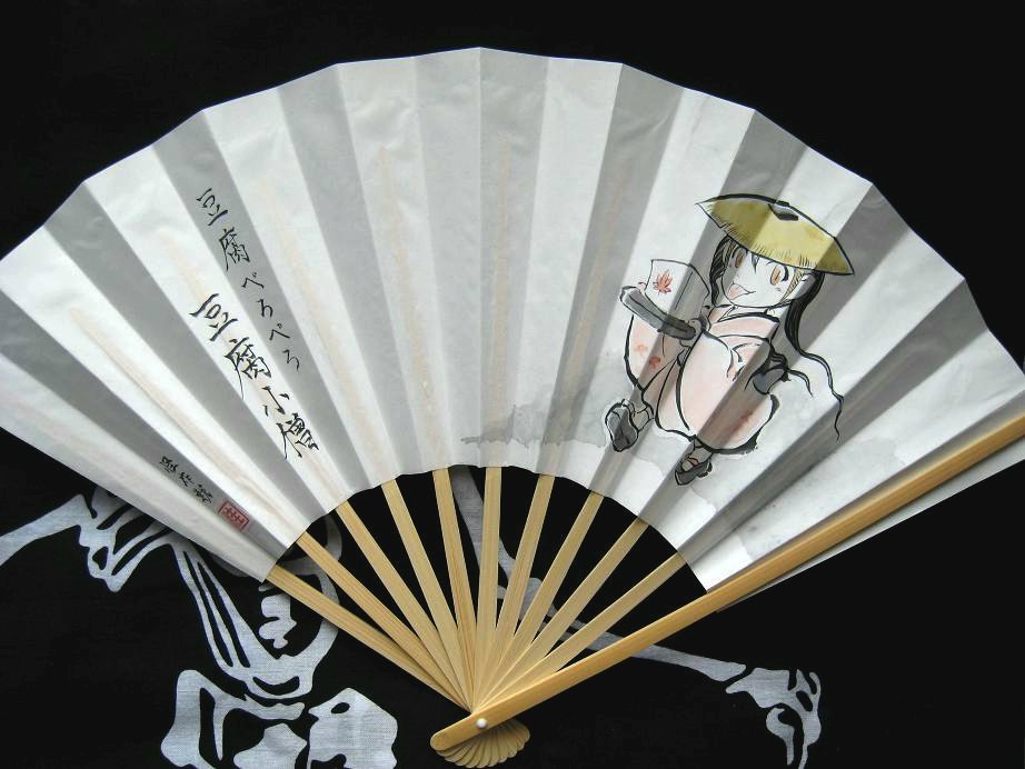 参加者の皆様、お疲れ様でございました。ありがとうございました。 心配された雨も、なんとかギリギリもってくれて、 無事(?)開催出来て良かったと思います。 どうにも屋外イベントなので天候に左右されますが、 今後も出来るだけ天気が持ちますように…。 さて! とりあえず蘭陵亭の新作団扇・扇子を簡単にご紹介させて頂きたいと思います。 さっそく参りますよ。 山ン本五朗左衛門。 一応初描きかしら? 鞍野郎。 これも初描きっぽい。 火車。 ちょ、そこの炎邪魔~!! 猫また。 キャット空中三回転。 白澤。 妖怪に大変詳しい小学生君からのリクエストでした。 普通に「国書刊行会」がどうとか言ってましたからね? 将来がふあ…いえ楽しみです! 化けの皮衣。 多分初描き。 うむ、招き猫的なニャンコのポーズに見えるw 今回は以上でございます。 次回モノノケ市は11/27(日)10:00~17:00(予定)です。 http://www.kyotohyakki.com/web_0317/oubo.html 基本的に参加予定でございます。 多分、また物怪新聞にも記事が載るはず。 またまた妖怪好きな皆様とお会い出来るのを楽しみにしております。 今後とも怪作戦、ならびにモノノケ市をよろしくお願いいたします。 2011.10.13 Thu 23:35:41 桂つかさ 新作扇子@モノノケ市10/15(土)晴れてくれ…。土曜日は~れ~ろ~!! …テラでございます。 いやぁ10/13(木)現在、かなり天気がやばそうな15日(土)モノノケ市でございますが…。 とりあえず無事開催されれば販売予定の桂君の新作扇子のご紹介です。 @千円なり。 例によって例の如く手描きの一点モノでございます。 瓢箪小僧。 背景が墨と緑の瓢箪柄になってて素敵です。 着物にもこっそり瓢箪模様が…。 豆腐ぺろぺろ。 …うん、これはもう 豆腐小僧とか豆腐娘じゃなくて、 「豆腐ぺろぺろ」 なんだと理解。 ペロペロしていただきたいですね! 兎にも角にも土曜日の天候が回復して、 これらを無事頒布できますように。 皆々様に無事お会い出来るように祈っております。 …マジ頼むよ、ホント。 2011.10.09 Sun 22:06:38 10/15(土)モノノケ市出展&妖怪交流会告知ども。世間では三連休でございますか? 私の休みは今日だけです!テラでございます。 表題の件ですが、 まず、毎度御馴染み、 京都一条妖怪ストリート、モノノケ市に参戦します! http://www.kyotohyakki.com/web_0317/news.html 今回は夕方16:00~21:00ごろまでの開催になります。 百鬼夜行行列も同時開催です。 また、規模も境内を出て、商店街まで張り出して過去最大規模になる模様。 あと、頒布される物怪新聞にも寄稿しています。 怪作戦の頒布予定は先日の出張モノノケ市@ガレリアかめおかとほぼ同じですが、 今回は妖怪リクエストもありますので! よろしくお願いいたします。 【既刊】 妖怪画本 第三巻 300円 妖怪画本 第二巻 300円(残部少) 妖怪写真集 第一巻 200円 妖怪写真集 第二巻 200円 蘭陵亭個人誌 蘭-アララギ- 300円 ぬらりひょん・百鬼夜行図B5パネル 各500円 妖怪扇子・団扇 1000円 妖怪リクエスト(お好みの妖怪をイベント期間中に扇子にお描きします!) 1000円 また、このモノノケ市との出展とは別に、 日中の妖怪交流会を企画しております! 妖怪写真の新作、撮っちゃいますよ! 予定 11:30 京都駅集合 昼食交流会 ⇒船岡山公園へ移動(市バス) 14:00ごろ 船岡山公園にて妖怪お馬鹿写真撮影して遊ぶ。 15:00ごろ 撮影切り上げて妖怪ストリートへ向け妖怪散策しつつ移動開始。 (建勲神社、土蜘蛛塚、釘抜き地蔵、渡辺綱灯篭、上七軒等予定) 16:00 モノノケ市開始 18:30 百鬼夜行開始 21:00 モノノケ市終了、百鬼組と交流会一般参加者で希望者は打ち上げ開始 (時間が遅いので可能な方のみ) 22:00 モノノケ市撤収完了。打ち上げに合流 参加希望の妖怪好きの方はkm_kyougo●hotmail.co.jp(●を@に変えてお願いします)まで。奮ってご参加ください! もしくは、ツイッターでテラ宛にリプライくださっても結構です。 http://twitter.com/#!/tarasensei *天候により、内容変更、中止の場合がございます。 因みに散策予定はこんな感じ。 (妖怪ストリート管理人コウノさん作) …なんか、初めて「プロデューサー」っぽい事をしてる気がしますw いつもは「プロデューサー」っても、 アイマスのPくらいの意味ですからね? 絵師さんのテンション上げたり、思い出ボム仕込んだりして イベントに勝利する簡単なお仕事です。 実質マネージャー…。 すぐにレッスンをサボってあふうとか言ってる絵師のケツを叩きつつ、 テンションは落とさないようにですね… …なんの話でしたっけ? ともかく(笑)、モノノケ市、交流会、ともによろしくお願いいたします。 2011.10.07 Fri 20:57:48 境港 水木しげる文庫にて販売中の新作扇子紹介ども。テラでございます。 先日の出張モノノケ市@ガレリアかめおかにお越し下さいました皆様、 ありがとうございました。 …と思う間もなく15日(土)のモノノケ市本番もあと一週間後なのですが! 本日は新作扇子のご紹介。以前も書かせて頂きましたように、 境港の㈱千年王国様「水木しげる文庫」にて、