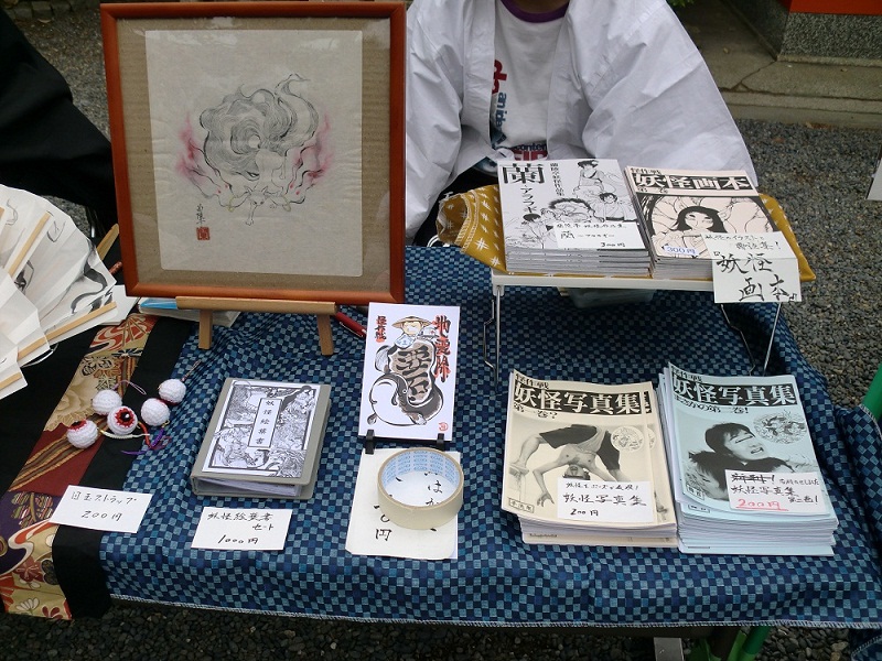 とりあえず作品紹介は以上です! ご来店、お買い上げ下さった皆様に篤く御礼申し上げます。 次回モノノケ市は7/31(日)予定です。 http://www.kyotohyakki.com/web_0317/schedule.html 都合が付けば参加するつもりですが、テラ個人はその頃、 参加出来ると良いのですが。 2011.05.09 Mon 21:08:58 怪作戦 モノノケ市レポート2011年 5月②5/4(水)。前日と打って変わってこの日は暑かったです。 前日と配置場所が変わったので、レイアウトも変わってます。 写真で見ても日差しが強いですね。 「千歳飴を持たせたい…」