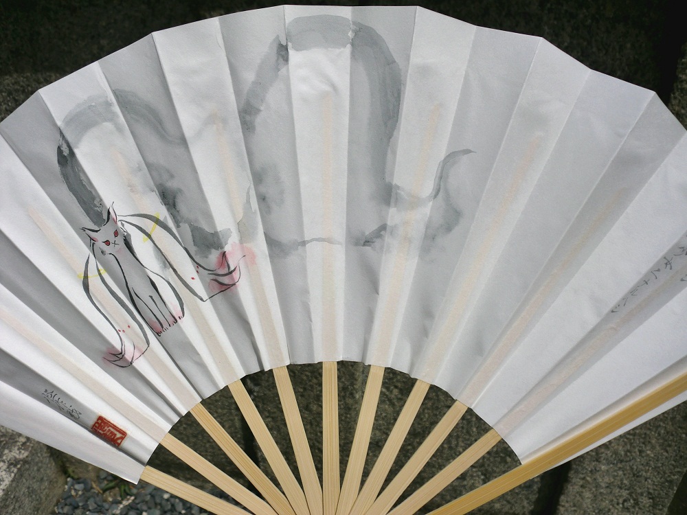 …えー、作品紹介です。 全て蘭陵亭作。順番は時系列ではありません。 毛羽毛現。扇子としては初かも? まだ紹介は残っていますので、追って更新していきます。 よろしくお願いいたします。 2011.05.08 Sun 14:22:12 怪作戦 モノノケ市レポート2011年 5月①先日お知らせさせて頂きましたように、 妖怪アートフリマ「モノノケ市」に参加して参りました。 http://www.kyotohyakki.com/web_0317/top.html 参加者の皆様、お疲れ様でした。 作品紹介やらイベントレポートやらをボチボチやっていこうと思います。 5/3(火)モノノケ市初日。 ちょっと肌寒いくらいのお天気でした。 今回は「世紀の妖怪ミイラショウ」も開催されました。 怪作戦ブースの様子。モノノケ市は広く物が置けるのがいいですね。 びろーん。 おそらく世界に一つだけのびろーん扇子。 しかし、この子も5/4にはお買い上げ頂けました。 小豆洗い。 「お洗濯しているように」とのリクエストで、 五徳猫。 以前の鼎談の成果を踏まえて、ちゃんと複乳おっぱいが描いてあります(笑)。 とりあえず本日はここまで。 2011.05.01 Sun 21:41:25 5/3(火)5/4(水)京都モノノケ市頒布詳細ども。豆富小僧を観てそのまま酒を呑んだら蘭陵亭と二人して調子が悪いテラでございます。