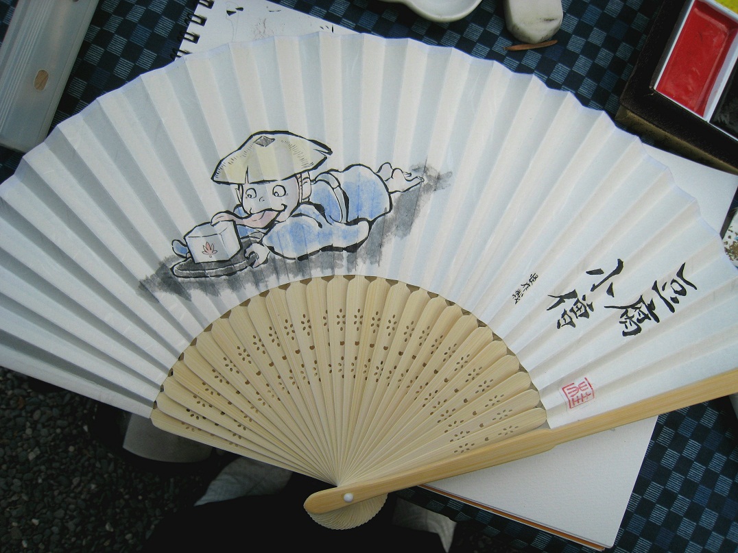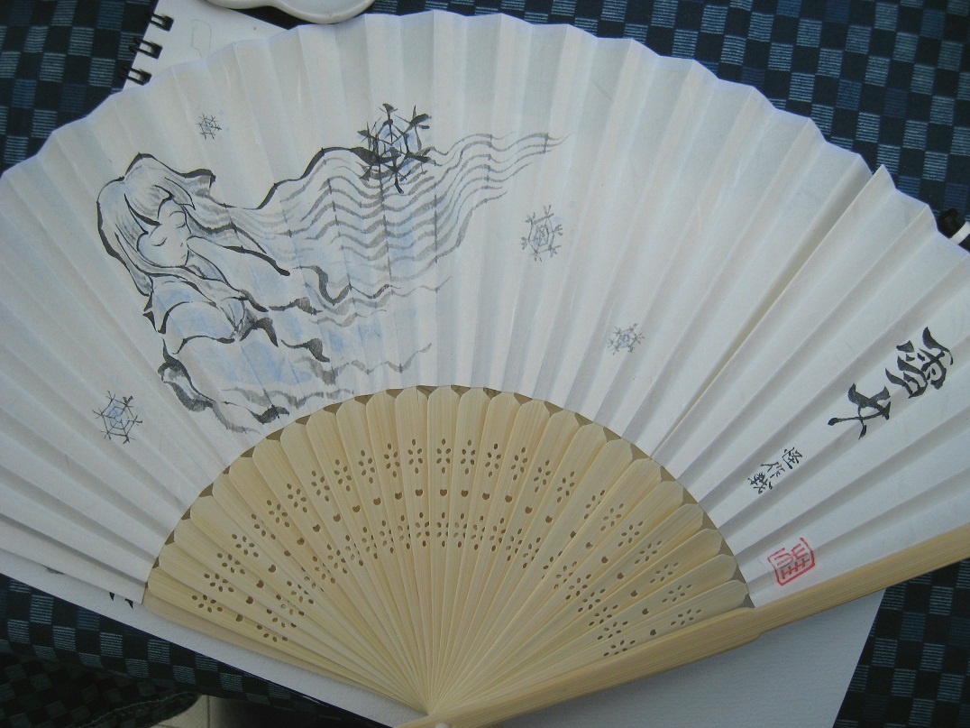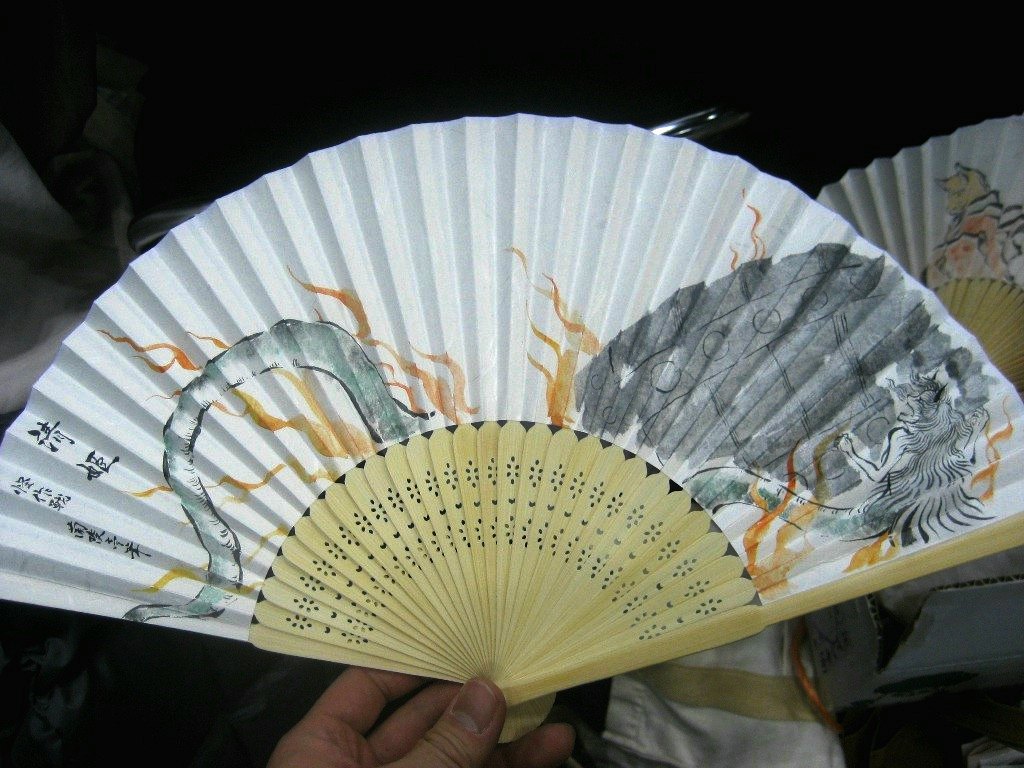 *夏扇子はいわゆる「京扇子」の事ですが、「京扇子」は京都扇子団扇商工協同組合の登録商標(地域団体商標)なのだそうです。大雑把に言えば、骨が多くて平たくて柔らかい(当然扇面の凹凸も多い)のが夏扇子タイプ。骨が少なくて硬い(扇面の凹凸が少ない)のが江戸扇子タイプになります。 大きさだけでなく、形状等も異なりますので、また違った風合いの妖怪扇子になるかと思います。今後ともよろしくお願いいたします。