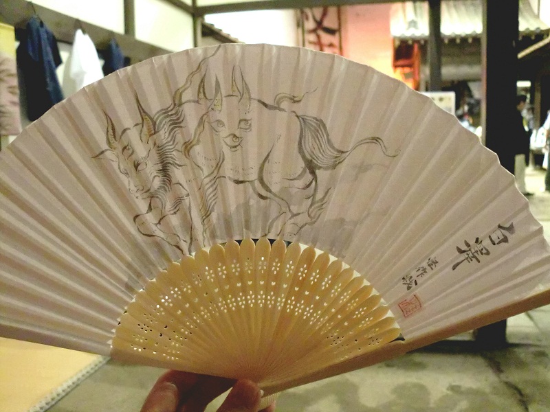 もったいなくも7000円の値段を付けていただけました! しかし、大変なのはこれから。 「雷獣」 渋いっ! マイナーだがけして嫌味のないチョイス。 三十分くらいで描き上げて戻ります!とお約束してダッシュで化け市化け座会場へ。 …周りが本格的に撤収に入り、なんだか照明とかも落ちる中、 背後にあった垂れ幕も片付けられ、怪作戦自身、余分な物は片付けて、 しかし、30分経っても全然描き上がらない!