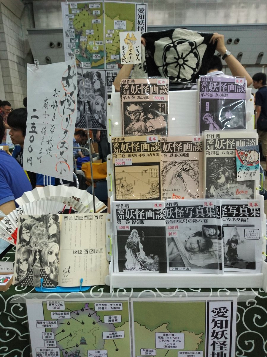 2017.08.20 Sun 20:39:07 BiblioMania様にて『愛知妖怪画談』『妖怪写真集』委託開始夏の各種イベントお疲れ様でございました。テラでございます。 ご紹介が遅れておりましたが、 名古屋が誇る「特殊書店BiblioMania」様にて、 夏の新刊『愛知妖怪画談第六巻』を始め、その他『愛知妖怪画談』シリーズ、『妖怪写真集第八巻』を委託販売していただいております! アクセスはコチラです。 https://bibliomania-books.com/access キャッチコピーも 珍本奇本大集合 本ノ国際秘宝館 と、非常にマニアックな本やグッズなどを扱ってみえるお店です。 地元で地元妖怪本を売れるのも嬉しいですし、 変った本を扱う本屋さんで変った本を売っていただけるのも嬉しいですね(笑)。 怪作戦の本以外も面白いものがいっぱいありますので、お近くの方は是非お立ち寄りくださいませ!よろしくお願いいたします。 2017.08.17 Thu 19:45:35 8/19(土)深川お化け縁日に参加します。はい!いつものテラでございます! …。 こっちの方が良かったって? うん、私もそう思う。でも紛らわしいから是非もないよネ?? という所で、有明作戦に引き続き、夏のニ連チャン上京、深川お化け縁日への参加です! 記 深川お化け縁日 8/19(土) *荒天時は翌日への延期の可能性あり。小雨決行のはず。 17:00~20:30 深川資料館通り商店街三丁目路上 https://fukagawakaidan.tumblr.com/ 『日本全国からお化け好きのアーティスト約60組が集合、日本の妖怪、伝承等をモチーフにしたオリジナルグッズを販売するフリーマーケットを中心に、大道芸や、見せ物等を展開します。』公式サイトより引用。 ということで、怪作戦も参加いたします! 夏の新刊『愛知妖怪画談第六巻』お持ちします! 地元愛知の妖怪を描き語るシリーズ第六弾。 今回は「女の妖怪」特集です。 日間賀島の黒姫さま、岡崎の婆桜(桜婆)、名古屋市の市衛雷、日吉の髪洗い婆、観音寺の五色蛇、尾張・美濃地方のギバを面白詳しく取上げます。イラスト写真多数。 160頁の超ボリュームで1000円です! その他、既刊の『愛知妖怪画談』シリーズもお持ちします。 どれも単独の内容でお楽しみいただけます。 あと…何気に『妖怪写真集第八巻』も、「深川お化け縁日」的には新刊です! (去年の冬刊行なので) 日刊SPA!さんにも取上げていただいた、妖怪の格好をポーズと身近な小道具だけで、珍妙に再現した奇本でございます。是非お手に取って笑ってください!400円! 他、手描き妖怪扇子や、 イベント中に扇子にお好みの妖怪をお描きする「妖怪リクエスト」(2500円)も行う予定です。 …が、小雨が心配されることと、夜開催ですので、天候、照明の状況次第で判断させていただくかも知れません。ご了承ください。 今の所、天気予報は曇りか一時雨かといった状況ですが…祈って待ちます。 どうぞよろしくお願いいたします! 2017.08.15 Tue 22:35:55 C92夏コミで蘭陵亭がお描きした妖怪扇子とか伊46とか。「第六艦隊所属の伊46だよ!提督、有明作戦お疲れ様でした」 …!? …はい、いつものテラでございます。 まぁ要するに、【C92の怪作戦ブースは「イ46」だった】って話なんですが(笑)。 伊46は実在の潜水艦なんで、「艦娘にして告知して欲しいにゃ~」とか我侭を言ったら、桂君が気合入れて描いてはくれたんだけど、描き上がったのがイベント直前というですね…。 せっかくですので、ここで掲載しておきます。 はい!改めました夏コミお疲れ様でした! 今回も数多くの方に新刊既刊を手にとっていただけました。 怪作戦ブースに立ち寄ってくださった皆様、並びにコミケ関係者の皆様などなどに、改めまして心より御礼申し上げます。 …それにしてもウチのブースに寄ってくださる愛知県に縁ある方の多さよ。 まぁ、愛知の妖怪地図も掲げておりますし、私も「愛知の妖怪本あります」とアピールもしているんですが、ありがたいことでございます。 さて、当日、妖怪リクエストにて、蘭陵亭がお描きした妖怪扇子のご紹介です。 出展風景。 蘭陵亭作 がしゃどくろ 蘭陵亭作 鬼 蘭陵亭作 雪女 本日のご紹介は以上です。 さー、返す刀で週末の8/19(土)には深川お化け縁日です! ちょっと天気が心配ですが…(雨天時は8/20(日)開催の可能性があったはず)。 信じて待ちます。どうぞ深川お化け縁日でもよろしくお願いいたします。 追記:こうして「軍事兵器を女の子に見立ててイラストに描いて楽しむ」ような事が、娯楽として気楽に楽しめる世の中でありますように。せめて、そうした世の中を意志していけますように。8月15日に。 2017.08.10 Thu 23:48:56 C92夏コミ頒布予定詳細夏ですコミケです雨が心配ですテラでございます! はい、目前に迫って参りました夏コミです! 怪作戦は 3日目、8/13(日) 東イ46a でございます!イシロクエー(イ46a)とか覚えていただけたらと! 新刊は『愛知妖怪画談第六巻』です! 地元愛知の妖怪を描き語るシリーズ第六弾。 今回は「女の妖怪」特集です。 日間賀島の黒姫さま、岡崎の婆桜(桜婆)、名古屋市の市衛雷、日吉の髪洗い婆、観音寺の五色