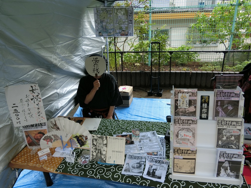 [料金] 1500円 (当日券500円up) 引用終り。終了後、3500円にて懇親会への参加も可能です。 怪作戦をご存知の皆様には今更でございますが、長年作り続けている『妖怪写真集』シリーズを取り上げて、大画面で映して、トークして楽しもうというものです。 上記説明文にもありますが、 こういう馬鹿なことを延々やっている同人誌のシリーズです(笑)。 普段はモノクロの同人誌ですが、今回はイベント会場の大画面ですので、カラーで大写しにしつつ、妖怪に大変詳しい、しげおかさん、式水さんにも大いに語っていただけるという訳です。 新宿で!怪作戦メインの妖怪イベント!! ということで、大いに楽しんでいただける催しにしたいと思います。 どうぞよろしくお願いいたします。 (上記文中でも触れられておりますが、当日券もあるはずです) PR 2017.09.12 Tue 22:41:15 9/10(日)駒込お化け市でお描きした妖怪扇子など。おはゴリラ! …という程、私はゴリラではありません。私は。テラでございます。 …。 …。 いつも以上に何がなんだかわからない書き出しですが、桂君はゴリラが大好きです。はい。 と、いうことで、駒込お化け市、お疲れ様でした! 晴天にも恵まれ、久しぶりに桂君も妖怪リクエストをお受けすることが出来ました。 本日は当日お描きした妖怪扇子のご紹介です。 桂つかさ作 件 …件? 桂つかさ作 狐火 桂つかさ作 雲外鏡 以上でございます。 次は名古屋コミティアへの参加となります。 また、駒込ではちょこっと妖怪写真の新作も撮ったりしておりました。 冬の新刊へ向けてもボチボチ準備しております。今後ともどうぞよろしくお願いいたします。 2017.09.05 Tue 23:06:05 9/10(日)駒込お化け市!ダルくてネムくてダルくてネムくて…(通常運転)。 テラでございます。 は~い!また東京行っちゃいますよ! 9/10(日)駒込で「お化け市」に出店です! *イベント全体としては9/10(日)以外にもあります。怪作戦は日曜のみの出店です。 …コレ、イベントタイトルとしては「お化け大祭」でいいのかしらん。 9/8(金)前夜祭、9/9(土)、9/10(日) 東京、駒込の妙義神社にて開催で、 9/8(金)は夜にトークイベント 9/9(土)は13時~19時 お化け市 夜にトークイベント 9/10(日)は11時~16時 お化け市 ←怪作戦はココに出店 日中に上映会「駒込付近の妖怪たち」 のはず。トークイベントは村上健司さん、天野幸雄さんのお話で、妖怪好きには大変豪華かと思います。(1500円) ということで、夏の新刊『愛知妖怪画談第六巻』を中心に、色々持って行きます! 「深川お化け縁日」が雨で残念でしたので、関東の皆様に改めてお楽しみいただければ何よりです。どうぞよろしくお願いいたします。 2017.09.04 Mon 22:39:59 『愛知妖怪画談第六巻』COMIC ZIN様にて委託開始!寝不足が…寝不足が…(通常運転)。 はい、テラでございます。次の写真集の準備も、少しづつやってますよ? COMIC ZIN様にて、夏の新刊『愛知妖怪画談第六巻』も委託開始いただけました!