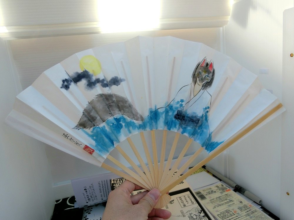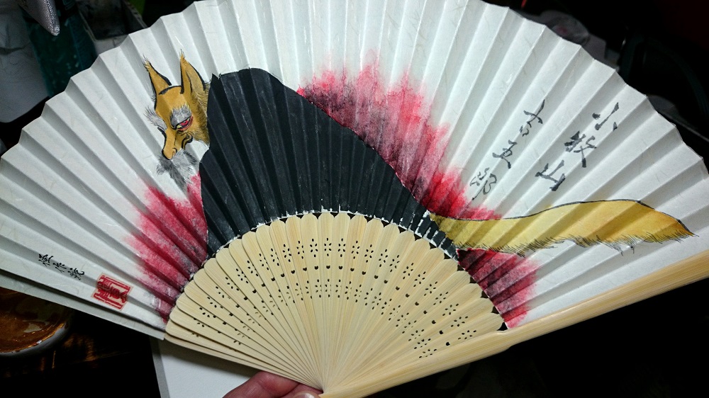 お好みの狐をこの場で白扇にお描きします!