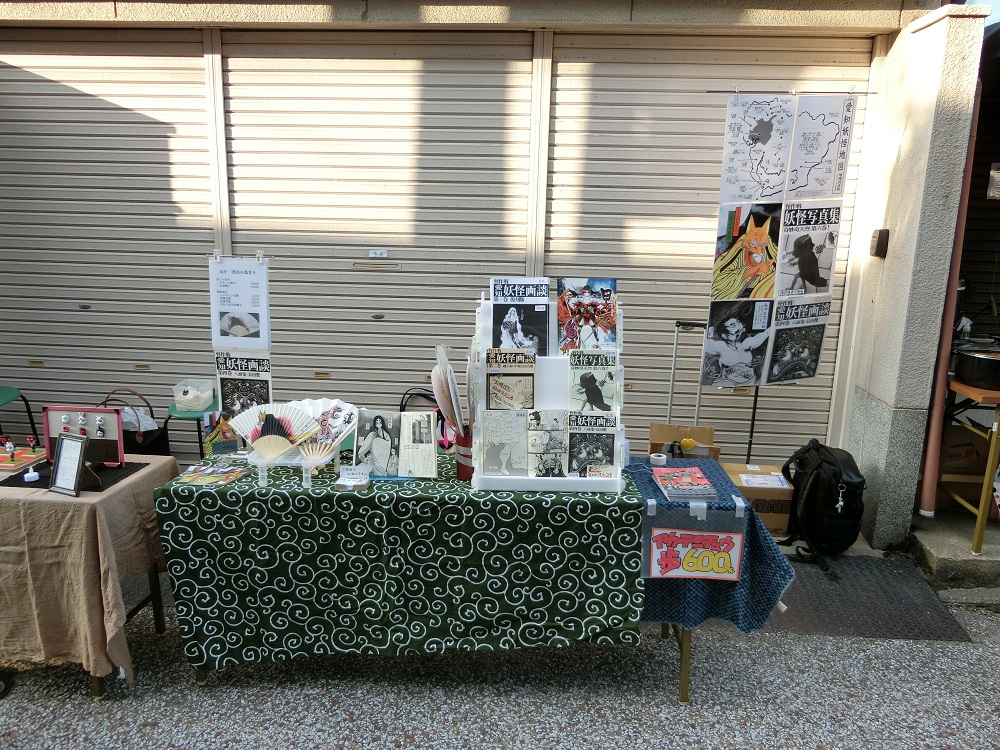 2015.10.18 Sun 21:41:11 10/17(土)モノノケ市お疲れ様でした。今日はそこそこ暖かいですね。テラでございます。 昨日のモノノケ市、お疲れ様でございました。 絵師チームが、桂君不参加、蘭君も仕事後にギリギリ駆けつけと、妖怪リクエストが出来なかったので、特にご紹介できる新ネタはないのですが…。 出店風景。 百鬼夜行行列も大盛況でした。 思えば、怪作戦四男君との出会いも秋の百鬼夜行行例でした。 場所もほぼここで。 当時小学生だった彼も今や高校生なのですから、歳を取るはずです(笑)。 他、今回印象深かった事といえば、 ・南アフリカご出身の美人さんに団扇をお買い上げいただく。 ・スペインご出身の美人さんに愛知妖怪画談をお買い上げいただく。 ・例によって思わぬ所で愛知のご縁。 とか。世界に羽ばたくカイサクセン。 あと、妖怪写真集を楽しんでくださるご感想に、新刊への気力をいただくなど。 新刊『妖怪写真集第七巻』、頑張って作ります。 さて、お次のイベントは10/25(日)豊川きつね祭りリベンジです! 今度こそ雨降りませんように…。どうぞよろしくお願いいたします。 2015.10.17 Sat 00:17:34 10/17(土)モノノケ市出店いたします②2015.10.12 Mon 21:04:18 10/17(土)モノノケ市出店いたします①涼しくなって参りましたね。 テラでございます。 10/17(土)モノノケ市出店いたします。 記 妖怪仮装行列 一条百鬼夜行