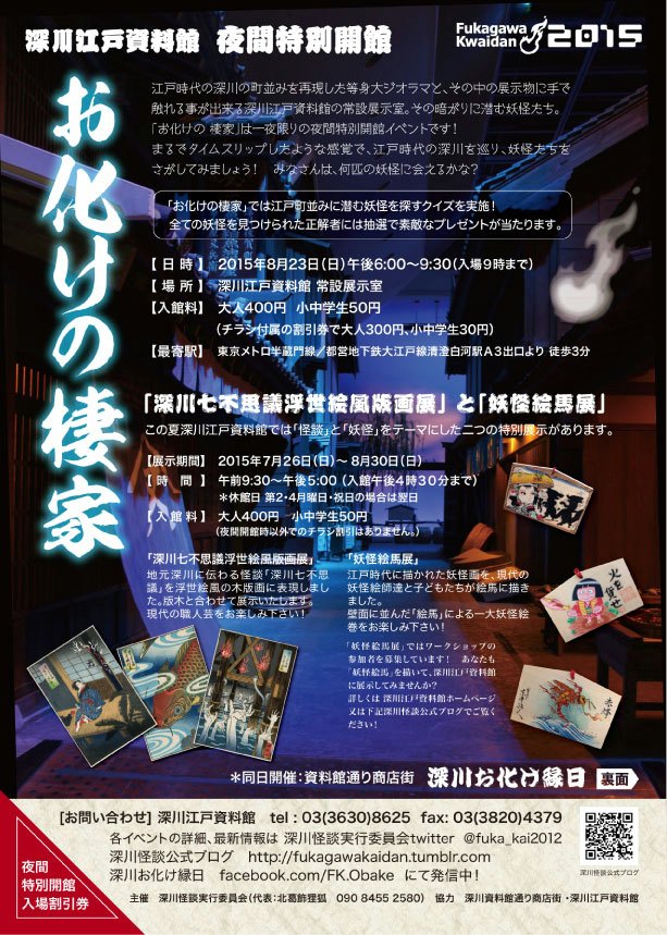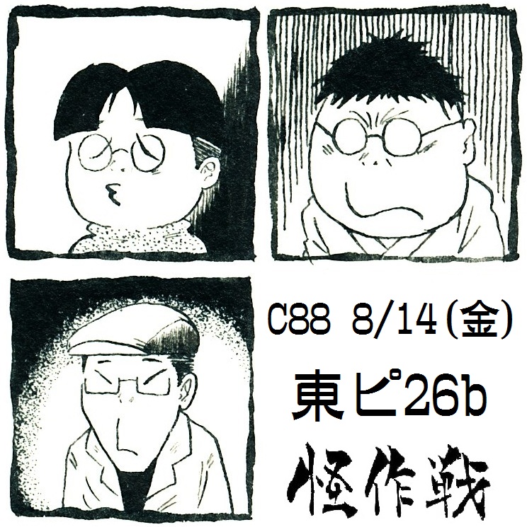 怪作戦こちらは妖怪サークル「怪作戦」のサイトです。 テラ、桂つかさ、蘭陵亭の三人で、東海地方を中心に、コミケや京都で活動中。主にサイトは蘭陵亭の絵と文です。 禁無断転載。PAGE | 15 16 17 18 19 20 21 22 23 24 25 | ADMIN | WRITE 2015.07.12 Sun 20:43:05 箱の中のお店への行き方②最短ルートはい、テラでございます。 連続で読んでくださっている方はそろそろ飽きましたでしょうかね(笑)。 二つ前の記事で紹介しておりますように、 「箱の中のお店」様にて『愛知妖怪画談第三巻』の委託販売を開始していただきました。 今回は「箱の中のお店」様への行き方のご紹介② 最短ルート編です。 ざっと述べると、 地下鉄黒川駅三番出口を右折、黒川西で右折、五本先の元志賀町1の交差点の左 でしょうか。 ①地下鉄黒川駅で降りて ②三番出口を出て右へ。 ③黒川西で右へ。 ④五本進んで、元志賀町1の交差点が見えてきたら ⑤「箱の中のお店」様に到着! …てなところかなと。 大通り沿いに行くより、シンプルで早いです。 ただ、目印がちょっと解り難いかな?と私は思いましたので、最初は一つ前の記事で紹介しましたように、大通り沿いに行くとわかり易いかなと思います。 『愛知妖怪画談第三巻』以外にも色々な方の作品が販売されております。良かったら是非一度お訪ねくださいね! PR 2015.07.12 Sun 20:33:46 箱の中のお店への行き方①大通り沿いはい、テラでございます。 一つ前の記事で紹介させていただきましたように、 「箱の中のお店」様にて『愛知妖怪画談第三巻』の委託販売を開始していただきました。 今回は「箱の中のお店」様への行き方のご紹介① ①というのは、最初は最短距離でなく、大通り沿いの方がわかり易いかな?と思ったからです。 ざっと述べると、 地下鉄黒川四番出口を出て左折して黒川に出て左折して四本目のデニーズ手前を左折して、綿神社の向こう かなと。 ①地下鉄黒川駅で降りて ②四番出口 ③左に出て、黒川の交差点でも左 ④四本目、デニーズの手前を左折。 ⑤綿神社が見えてきたら正解。もう少し行くと ⑥「箱の中のお店」様に到着! てなところかなと。 『愛知妖怪画談第三巻』以外にも色々な方の作品が販売されております。良かったら是非一度お訪ねくださいね! 2015.07.12 Sun 20:22:32 名古屋で買える!「箱の中のお店」様で『愛知妖怪画談第三巻』委託開始今日はどえりゃぁ暑いでいかんですね。テラでございます。 えー、怪作戦では、地元愛知の妖怪を推しておる訳ですが… 肝心の地元で怪作戦の冊子を購入する手段はこれまでございませんでした…。 と、いう状態を解消すべく(笑)、 「箱の中のお店」様で「愛知妖怪画談第三巻」の委託販売を開始していただきました! 箱の中のお店 名古屋市北区元志賀町1丁目12−1東ー2 https://twitter.com/hakofo_shop 運営:箱の中のユーフォリア http://hakofo.com/ 『愛知妖怪画談第三巻』委託販売小売価格 648円となります。 刈谷の妖狐「恩田の初連」の話を中心に、描き、語ります。 ちょっと解り難い場所なので、別記事で場所の紹介もさせていただけたらと思います。 「名古屋(近郊)在住で、ちょっと興味あるけど、コミケとかモノノケ市とか行っておられんわー!」 …なんてお方に買っていただけますと、これ幸いでございます。 よろしくお願いいたします。 2015.06.13 Sat 22:40:48 深川お化け縁日にも出ちゃう2015夏。8月23日(日)はい、きんのうご挨拶させてまったばっかのテラでございますよ。 今年も深川お化け縁日も出ちゃいますよ! 8月23(日)16:30~20:00 東京の深川資料館通り商店街三丁目路上にて。 …なんというかコミケの翌週ですけどね!? 怪作戦、コミケは一日目8/14(金)東ピ26bでございます。 おお、テリブル。正に死のロード。 ロードというか道路というか路上と言うか。 お化けのイベントですが、死なないように頑張ります(笑)。 夏コミ新刊を持参する予定ですので、 8/14(金)都合が悪い関東民の皆様などは、この深川お化け縁日でゲットいただいても大変歓迎でございます。 また、8/23(日)は深川江戸資料館で夜間特別会館もやってみえるみたいです。 矢がカーンというからやかーん…ではないと思いますが、よかったらこちらも合わせてお楽しみ頂けたらと思います。 コミケにせよ深川にせよ、新刊間に合わせなきゃなんともなりませんので、頑張って参ります。よろしくお願いいたします。 2015.06.12 Fri 23:05:37 C88夏コミ当選しました。一日目8/14(金)東ピ26bです!はい、ご無沙汰しております。テラでございます。 C88夏コミ当選しました! 一日目8/14(金)東ピ26bです! …暫定で語呂は「金の東ピニロクビ」…かな。ろくろ首的な感じで。 サークルカットはこちら。前巻の表紙でございます。 新刊は 『愛知妖怪画談第四巻』 を予定。「八面鬼と愛智御曹司」「長田蟹」を特集します。 鋭意製作中でございます。 この所三日目配置が多かったのですが、 今回は一日目!金曜日!8月14日です!! 因みに、金曜日行ってられない、という関東圏の方には、 8/23(日)深川お