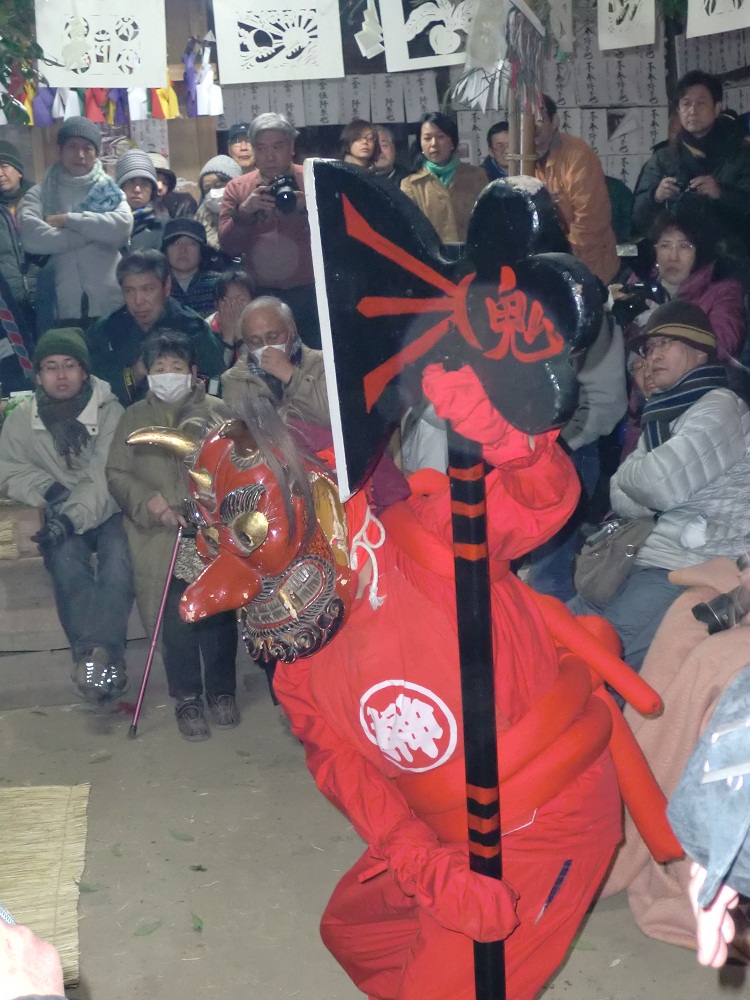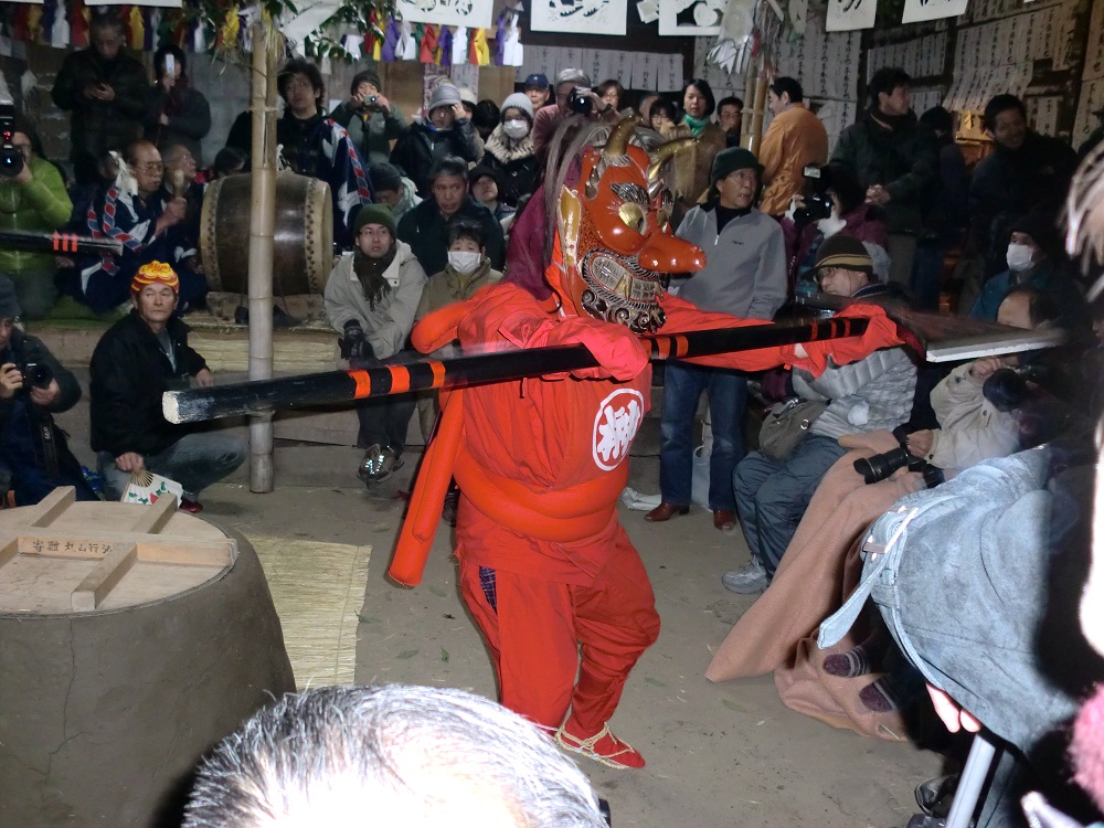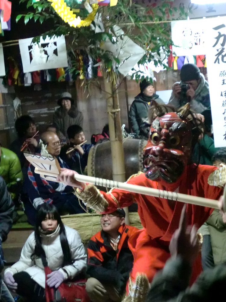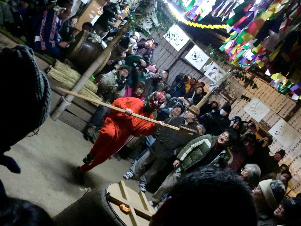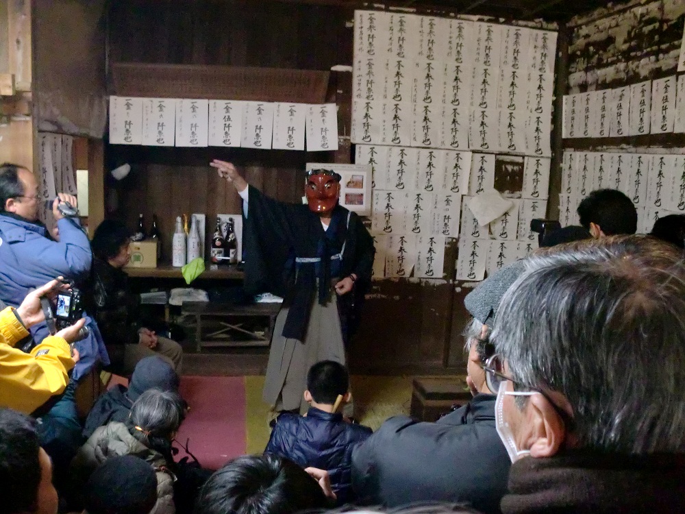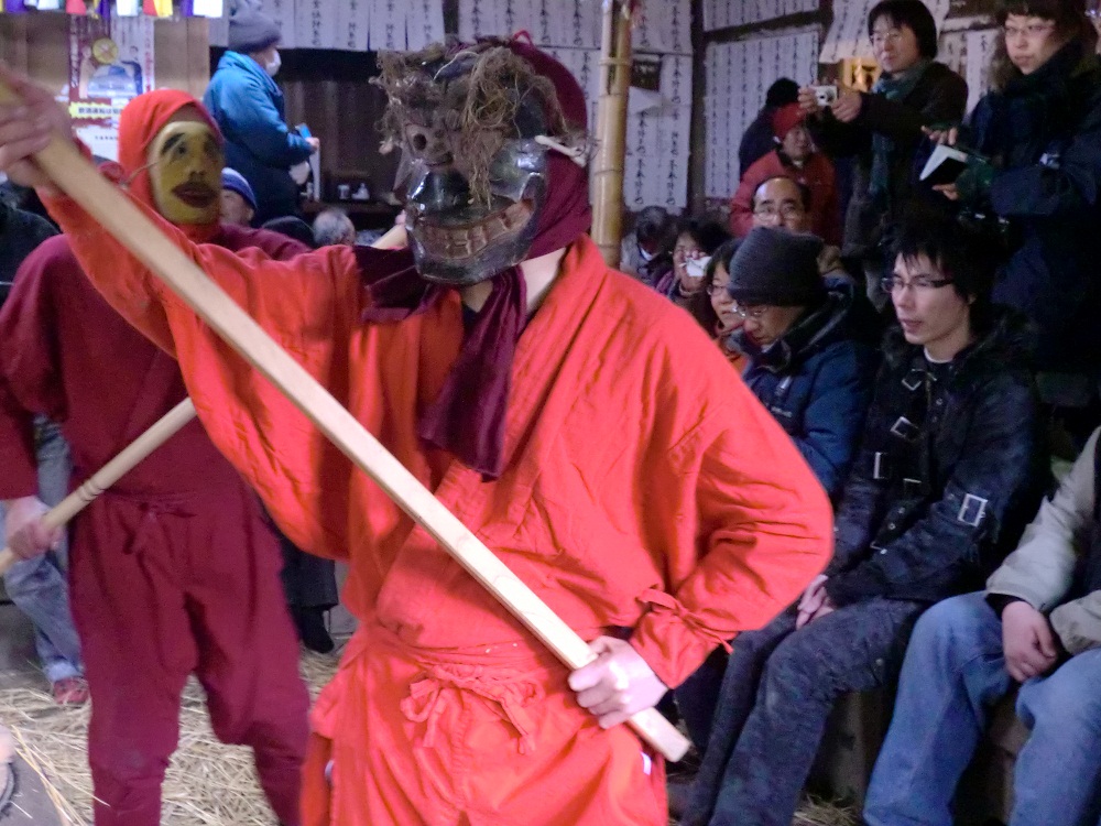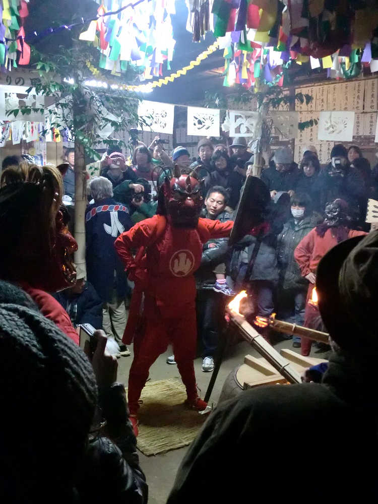 京都:京都市上京区 大将軍商店街 2013.03.20 Wed 22:29:01 妖怪絵馬100枚展 怪作戦も出品中!おこんばわん。 皆様、祝日を休日をお過ごしでしょうか? 私は出勤でしたよ!テラでございます。 いよいよ本日より始まりました 「妖怪絵馬100枚展」、怪作戦も出品しておりますよ! 「妖怪絵馬100枚展」や、開催場所「Art Labo深川いっぷく」さんの詳細はこちら。 http://shikimizu.blog7.fc2.com/blog-entry-144.html http://www.fukagawa-ippuku.jp/ 一部趣旨を引用させていただくと、 「ツイッターの妖怪紹介bot「瓶詰妖怪」より好きな妖怪を選んでいただき、 皆様の思い思いの妖怪を100枚の絵馬に描いて展示するという企画」 でございます。 瓶詰妖怪ボットはこちら。 https://twitter.com/bottle_youkai という訳でこちらの絵馬を出展させていただきました! 桂つかさ作 おとら狐 1500円にて展示販売中!(売れてなければ) 桂つかさ作 二龍松 2000円にて展示販売中!(売れちゃってなければ) 蘭陵亭作 ヤロカ水 2500円にて展示販売中!(売れちゃってなければ) はい、安定の地元愛知押しです(笑)。 どんな妖怪?と思った方は、よかったらこちらの 「愛知おもてなし妖怪隊」サイトをどうぞ! http://aichiyoukwaitai.web.fc2.com/ という宣伝。 …ちょっとマニアックなので、とっつきにくいかも知れませんが…。 この「妖怪絵馬100枚展」は、24日(日)まで開催されています。 関東圏にお住まいの方は是非お出かけくださいませ! っていうか、行きたかったですよ! 2013.03.18 Mon 21:29:40 布川の花祭りに行ってきました。④おこんばわん。テラでございます。 もう、今回で終りますから、まー少々お付き合いくださいましね? 前回、翁の舞まで見て、そろそろ寝とかんと運転がツライと判断して一旦車に退避。で、二時間ほど仮眠してモソモソ起き出したら、ちょうど朝鬼が舞っている所に間に合いました! 茂吉鬼さん。一応この舞の主役(でいいはず)。 この面は「鼻たらし」でいいはず。 …鬼…かしら(笑)? どちらも茂吉鬼の伴鬼でいいはず。 茂吉っぁんは鉞(まさかり)でなく、槌を持ってます。 アップ。 しかし、インパクトのある顔です。鼻たらしさん。 釜の周りを舞ってます。 こうして無事朝鬼も見ることができました。 お次は獅子舞。 我ながらなかなか良く撮れた気が。 鎮めの神事。 Mr.カラテではありません(古い)。 はい!テラによる布川花祭りレポートは以上で締めたいと思います!長々とお付き合いいただきまして、ありがとうございました。 いやー、ハードでしたけど、色んな鬼さんも出て来て飽きないですね。 特に周囲に混ざって「てーほへてほへ」と唱和していると、どんどんトランスしてきます。また、他の地区の花祭りにも行きたいですね。 2013.03.13 Wed 22:58:36 布川の花祭りに行ってきました。③2013.03.09 Sat 21:11:42 布川の花祭りに行ってきました。②はい、北海道以外の皆様、暑いですね! テラでございますよ! なんか、花祭りに行ってきたらホントに春が来ちゃった感じがしてます。 (本来は11月のお祭りですけどね) さて!能書きは兎も角前回の続きです! 舞はひたすら続きます。 んで、深夜四時ごろ、榊鬼の伴鬼さん登場。 黒っぽいですけど、青鬼の面みたいです。 「古よりの花祭り」によると。 テーホヘテホヘ アップ。おそがい。 更に榊鬼の伴鬼さん登場。 これは火の鬼の面みたいです。 なんかお尻にも草鞋?つけてたんですね。 撮影時は気付かなかった。 これは結構綺麗に撮れたかな。 撮影環境も苛酷なのでなかなか難しい。 更に更に引き続いて小さい伴鬼さんも登場! この面には特定の名前はないみたい? そんなこんなで彼等だけでも一時間ほど舞ってたでしょうか。 多分深夜…というか早朝五時くらい? 遂に榊鬼様登場! お腹に輝く丸に榊! (わかりやすい) …といった所で今宵はここまでということで。 次の更新をお楽しみに! 2013.03.05 Tue 23:05:24 布川の花祭りに行ってきました。①はい、どうもおこんばんわ。 表題の通り、3/2(土)~3/3(日)布川の花祭りに行ってまいりました。 花祭りもこれで三度目です。 ほぼ徹夜。昨日まで死んでました(笑)。 たくさん写真を撮ったので、何回かに分けてご紹介できたらと思います。 なお、写真や祭りの説明は「間違っている可能性大」なのでご注意ください! 舞庭(まいど)の様子。 湯蓋やざぜちが見えます。 花の舞(一力花)…で合ってると思いますが…。 これも一力花(のはず)。 しかし、ぶっちゃけ幼女の舞と老人の舞で、 盛り上がりもカメラも露骨に違うのが面白かったです(笑)。 いよいよ、山見鬼の伴鬼A(仮称)登場。 手に持っているのは鉞(まさかり)。 昔は斧だと思ってましたよ! 続いて山見鬼の伴鬼B(仮称)登場。 ちょっと新しめの面っぽい? 更に山見鬼の伴鬼C(仮称)。 このお面、古そうなんですけど、 「古よりの花祭り」に載ってない感じ? 二人(?)並んだ横顔。 そして遂に山見鬼様登場! キャー!抱いて!! ちょっと隠れてますが、お腹に山の字が。 (わかりやすい) 足元にござが敷かれてますね。 伴鬼には無かったっぽい? あと、手前に火の