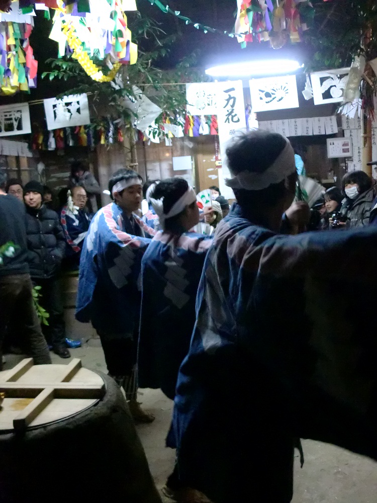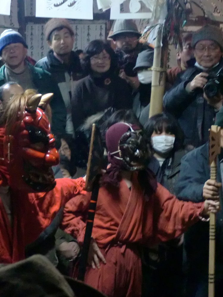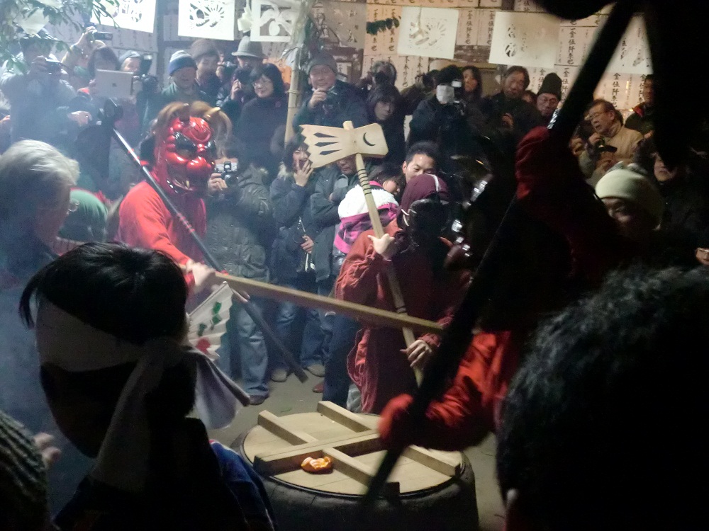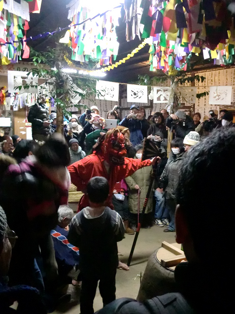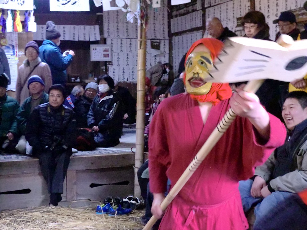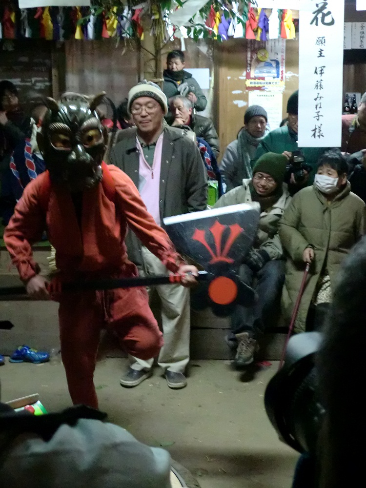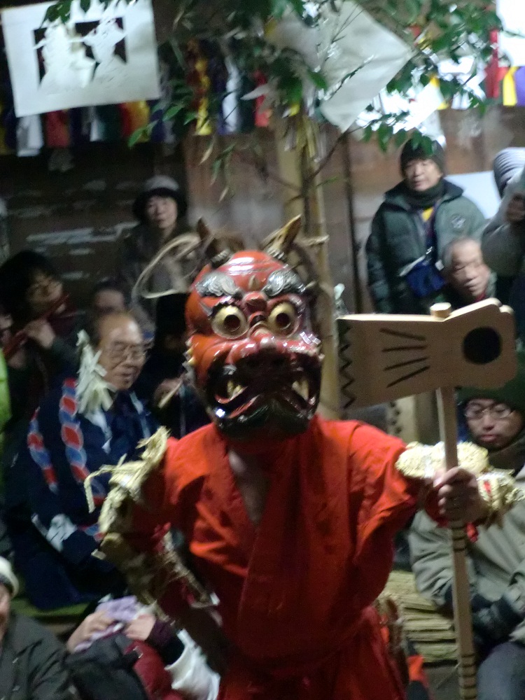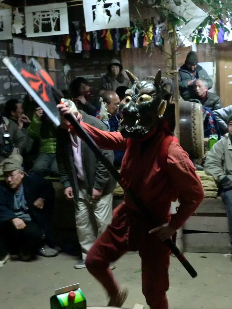 京都:京都市上京区 大将軍商店街 2013.03.20 Wed 22:29:01 妖怪絵馬100枚展 怪作戦も出品中!おこんばわん。 皆様、祝日を休日をお過ごしでしょうか? 私は出勤でしたよ!テラでございます。 いよいよ本日より始まりました 「妖怪絵馬100枚展」、怪作戦も出品しておりますよ! 「妖怪絵馬100枚展」や、開催場所「Art Labo深川いっぷく」さんの詳細はこちら。 http://shikimizu.blog7.fc2.com/blog-entry-144.html http://www.fukagawa-ippuku.jp/ 一部趣旨を引用させていただくと、 「ツイッターの妖怪紹介bot「瓶詰妖怪」より好きな妖怪を選んでいただき、 皆様の思い思いの妖怪を100枚の絵馬に描いて展示するという企画」 でございます。 瓶詰妖怪ボットはこちら。 https://twitter.com/bottle_youkai という訳でこちらの絵馬を出展させていただきました! 桂つかさ作 おとら狐 1500円にて展示販売中!(売れてなければ) 桂つかさ作 二龍松 2000円にて展示販売中!(売れちゃってなければ) 蘭陵亭作 ヤロカ水 2500円にて展示販売中!(売れちゃってなければ) はい、安定の地元愛知押しです(笑)。 どんな妖怪?と思った方は、よかったらこちらの 「愛知おもてなし妖怪隊」サイトをどうぞ! http://aichiyoukwaitai.web.fc2.com/ という宣伝。 …ちょっとマニアックなので、とっつきにくいかも知れませんが…。 この「妖怪絵馬100枚展」は、24日(日)まで開催されています。 関東圏にお住まいの方は是非お出かけくださいませ! っていうか、行きたかったですよ! 2013.03.18 Mon 21:29:40 布川の花祭りに行ってきました。④おこんばわん。テラでございます。 もう、今回で終りますから、まー少々お付き合いくださいましね? 前回、翁の舞まで見て、そろそろ寝とかんと運転がツライと判断して一旦車に退避。で、二時間ほど仮眠してモソモソ起き出したら、ちょうど朝鬼が舞っている所に間に合いました! 茂吉鬼さん。一応この舞の主役(でいいはず)。 この面は「鼻たらし」でいいはず。 …鬼…かしら(笑)? どちらも茂吉鬼の伴鬼でいいはず。 茂吉っぁんは鉞(まさかり)でなく、槌を持ってます。 アップ。 しかし、インパクトのある顔です。鼻たらしさん。 釜の周りを舞ってます。 こうして無事朝鬼も見ることができました。 お次は獅子舞。 我ながらなかなか良く撮れた気が。 鎮めの神事。 Mr.カラテではありません(古い)。 はい!テラによる布川花祭りレポートは以上で締めたいと思います!長々とお付き合いいただきまして、ありがとうございました。 いやー、ハードでしたけど、色んな鬼さんも出て来て飽きないですね。 特に周囲に混ざって「てーほへてほへ」と唱和していると、どんどんトランスしてきます。また、他の地区の花祭りにも行きたいですね。 2013.03.13 Wed 22:58:36 布川の花祭りに行ってきました。③2013.03.09 Sat 21:11:42 布川の花祭りに行ってきました。②はい、北海道以外の皆様、暑いですね! テラでございますよ! なんか、花祭りに行ってきたらホントに春が来ちゃった感じがしてます。 (本来は11月のお祭りですけどね) さて!能書きは兎も角前回の続きです! 舞はひたすら続きます。 んで、深夜四時ごろ、榊鬼の伴鬼さん登場。 黒っぽいですけど、青鬼の面みたいです。 「古よりの花祭り」によると。 テーホヘテホヘ アップ。おそがい。 更に榊鬼の伴鬼さん登場。 これは火の鬼の面みたいです。 なんかお尻にも草鞋?つけてたんですね。 撮影時は気付かなかった。 これは結構綺麗に撮れたかな。 撮影環境も苛酷なのでなかなか難しい。 更に更に引き続いて小さい伴鬼さんも登場! この面には特定の名前はないみたい? そんなこんなで彼等だけでも一時間ほど舞ってたでしょうか。 多分深夜…というか早朝五時くらい? 遂に榊鬼様登場! お腹に輝く丸に榊! (わかりやすい) …といった所で今宵はここまでということで。 次の更新をお楽しみに! 2013.03.05 Tue 23:05:24 布川の花祭りに行ってきました。①はい、どうもおこんばんわ。 表題の通り、3/2(土)~3/3(日)布川の花祭りに行ってまいりました。 花祭りもこれで三度目です。 ほぼ徹夜。昨日まで死んでました(笑)。 たくさん写真を撮ったので、何回かに分けてご紹介できたらと思います。 なお、写真や祭りの説明は「間違っている可能性大」なのでご注意ください! 舞庭(まいど)の様子。 湯蓋やざぜちが見えます。 花の舞(一力花)…で合ってると思いますが…。 これも一力花(のはず)。 しかし、ぶっちゃけ幼女の舞と老人の舞で、 盛り上がりもカメラも露骨に違うのが面白かったです(笑)。 いよいよ、山見鬼の伴鬼A(仮称)登場。 手に持っているのは鉞(まさかり)。 昔は斧だと思ってましたよ! 続いて山見鬼の伴鬼B(仮称)登場。 ちょっと新しめの面っぽい? 更に山見鬼の伴鬼C(仮称)。 このお面、古そうなんですけど、 「古よりの花祭り」に載ってない感じ? 二人(?)並んだ横顔。 そして遂に山見鬼様登場! キャー!抱いて!! ちょっと隠れてますが、お腹に山の字が。 (わかりやすい) 足元にござが敷かれてますね。 伴鬼には無かったっぽい? あと、手前に火の