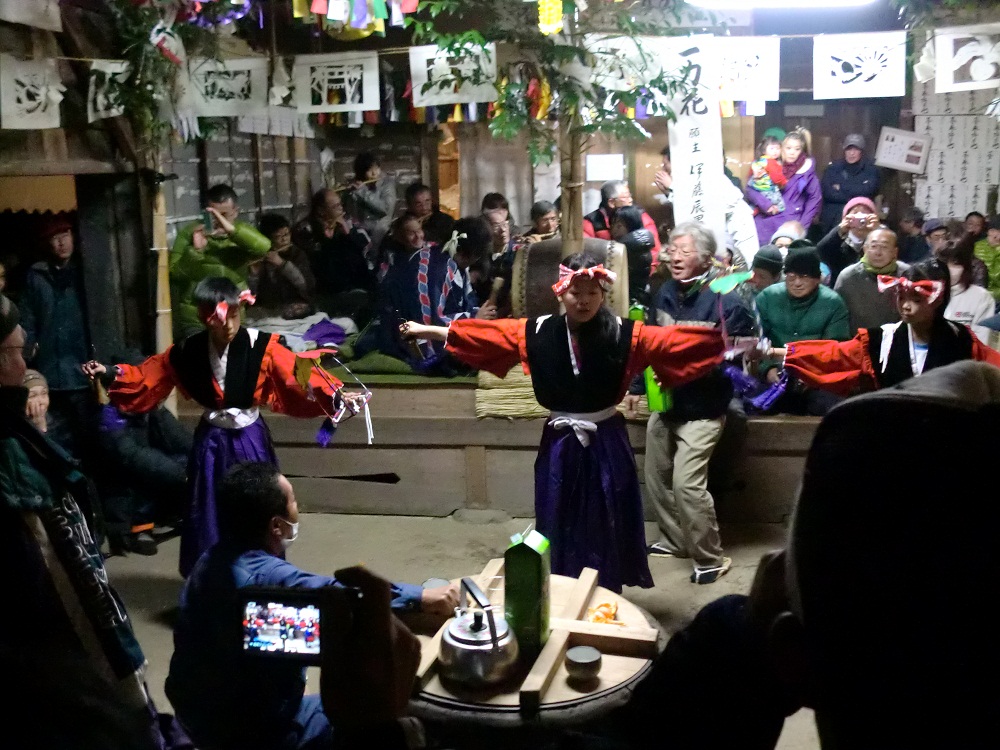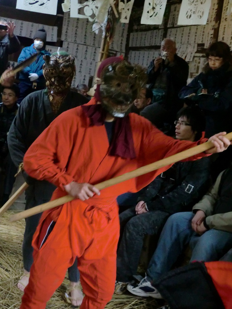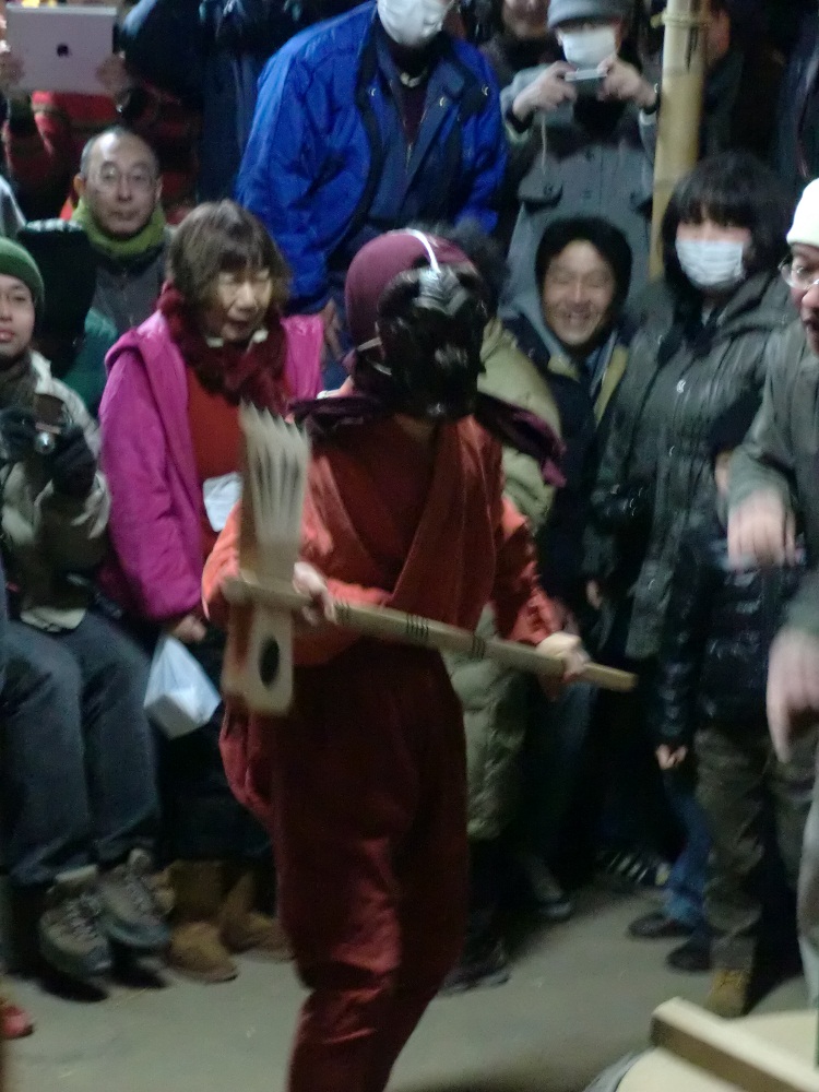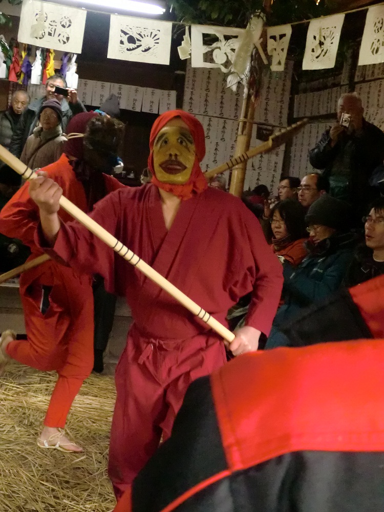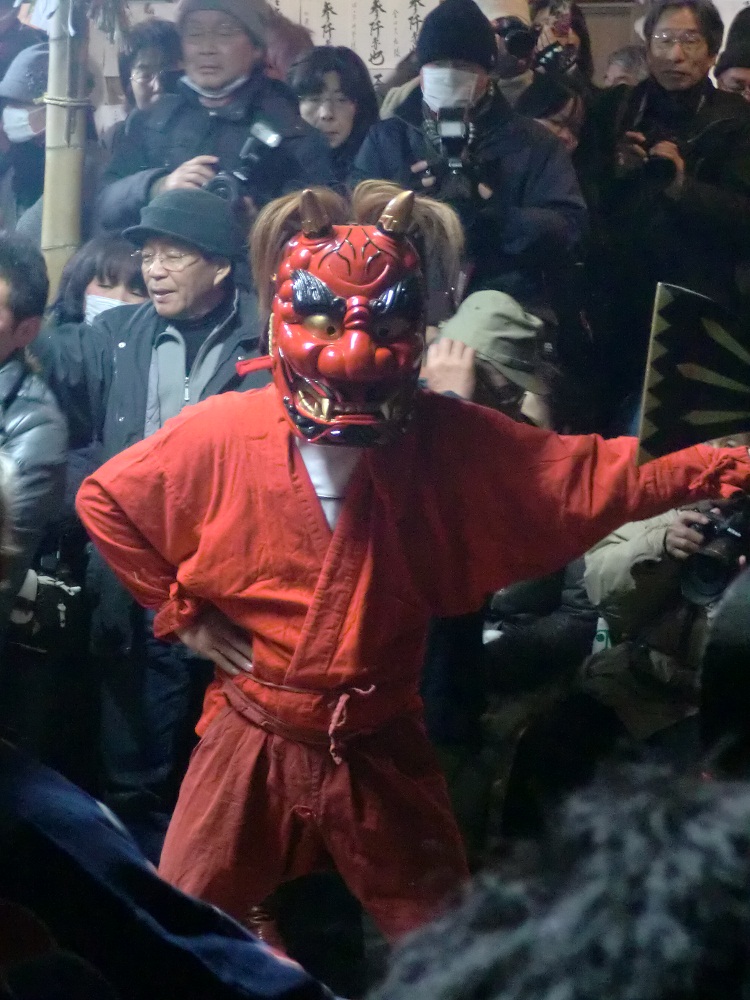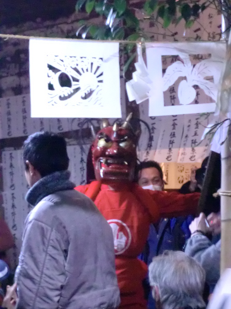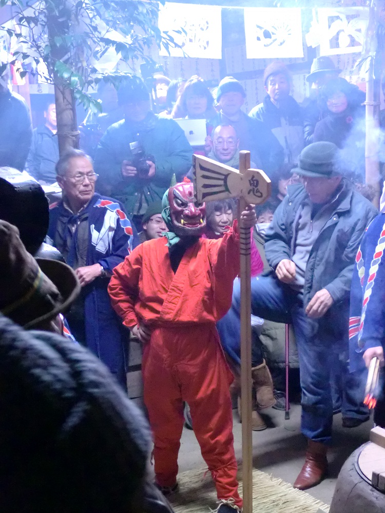 京都:京都市上京区 大将軍商店街 2013.03.20 Wed 22:29:01 妖怪絵馬100枚展 怪作戦も出品中!おこんばわん。 皆様、祝日を休日をお過ごしでしょうか? 私は出勤でしたよ!テラでございます。 いよいよ本日より始まりました 「妖怪絵馬100枚展」、怪作戦も出品しておりますよ! 「妖怪絵馬100枚展」や、開催場所「Art Labo深川いっぷく」さんの詳細はこちら。 http://shikimizu.blog7.fc2.com/blog-entry-144.html http://www.fukagawa-ippuku.jp/ 一部趣旨を引用させていただくと、 「ツイッターの妖怪紹介bot「瓶詰妖怪」より好きな妖怪を選んでいただき、 皆様の思い思いの妖怪を100枚の絵馬に描いて展示するという企画」 でございます。 瓶詰妖怪ボットはこちら。 https://twitter.com/bottle_youkai という訳でこちらの絵馬を出展させていただきました! 桂つかさ作 おとら狐 1500円にて展示販売中!(売れてなければ) 桂つかさ作 二龍松 2000円にて展示販売中!(売れちゃってなければ) 蘭陵亭作 ヤロカ水 2500円にて展示販売中!(売れちゃってなければ) はい、安定の地元愛知押しです(笑)。 どんな妖怪?と思った方は、よかったらこちらの 「愛知おもてなし妖怪隊」サイトをどうぞ! http://aichiyoukwaitai.web.fc2.com/ という宣伝。 …ちょっとマニアックなので、とっつきにくいかも知れませんが…。 この「妖怪絵馬100枚展」は、24日(日)まで開催されています。 関東圏にお住まいの方は是非お出かけくださいませ! っていうか、行きたかったですよ! 2013.03.18 Mon 21:29:40 布川の花祭りに行ってきました。④おこんばわん。テラでございます。 もう、今回で終りますから、まー少々お付き合いくださいましね? 前回、翁の舞まで見て、そろそろ寝とかんと運転がツライと判断して一旦車に退避。で、二時間ほど仮眠してモソモソ起き出したら、ちょうど朝鬼が舞っている所に間に合いました! 茂吉鬼さん。一応この舞の主役(でいいはず)。 この面は「鼻たらし」でいいはず。 …鬼…かしら(笑)? どちらも茂吉鬼の伴鬼でいいはず。 茂吉っぁんは鉞(まさかり)でなく、槌を持ってます。 アップ。 しかし、インパクトのある顔です。鼻たらしさん。 釜の周りを舞ってます。 こうして無事朝鬼も見ることができました。 お次は獅子舞。 我ながらなかなか良く撮れた気が。 鎮めの神事。 Mr.カラテではありません(古い)。 はい!テラによる布川花祭りレポートは以上で締めたいと思います!長々とお付き合いいただきまして、ありがとうございました。 いやー、ハードでしたけど、色んな鬼さんも出て来て飽きないですね。 特に周囲に混ざって「てーほへてほへ」と唱和していると、どんどんトランスしてきます。また、他の地区の花祭りにも行きたいですね。 2013.03.13 Wed 22:58:36 布川の花祭りに行ってきました。③2013.03.09 Sat 21:11:42 布川の花祭りに行ってきました。②はい、北海道以外の皆様、暑いですね! テラでございますよ! なんか、花祭りに行ってきたらホントに春が来ちゃった感じがしてます。 (本来は11月のお祭りですけどね) さて!能書きは兎も角前回の続きです! 舞はひたすら続きます。 んで、深夜四時ごろ、榊鬼の伴鬼さん登場。 黒っぽいですけど、青鬼の面みたいです。 「古よりの花祭り」によると。 テーホヘテホヘ アップ。おそがい。 更に榊鬼の伴鬼さん登場。 これは火の鬼の面みたいです。 なんかお尻にも草鞋?つけてたんですね。 撮影時は気付かなかった。 これは結構綺麗に撮れたかな。 撮影環境も苛酷なのでなかなか難しい。 更に更に引き続いて小さい伴鬼さんも登場! この面には特定の名前はないみたい? そんなこんなで彼等だけでも一時間ほど舞ってたでしょうか。 多分深夜…というか早朝五時くらい? 遂に榊鬼様登場! お腹に輝く丸に榊! (わかりやすい) …といった所で今宵はここまでということで。 次の更新をお楽しみに! 2013.03.05 Tue 23:05:24 布川の花祭りに行ってきました。①はい、どうもおこんばんわ。 表題の通り、3/2(土)~3/3(日)布川の花祭りに行ってまいりました。 花祭りもこれで三度目です。 ほぼ徹夜。昨日まで死んでました(笑)。 たくさん写真を撮ったので、何回かに分けてご紹介できたらと思います。 なお、写真や祭りの説明は「間違っている可能性大」なのでご注意ください! 舞庭(まいど)の様子。 湯蓋やざぜちが見えます。 花の舞(一力花)…で合ってると思いますが…。 これも一力花(のはず)。 しかし、ぶっちゃけ幼女の舞と老人の舞で、 盛り上がりもカメラも露骨に違うのが面白かったです(笑)。 いよいよ、山見鬼の伴鬼A(仮称)登場。 手に持っているのは鉞(まさかり)。 昔は斧だと思ってましたよ! 続いて山見鬼の伴鬼B(仮称)登場。 ちょっと新しめの面っぽい? 更に山見鬼の伴鬼C(仮称)。 このお面、古そうなんですけど、 「古よりの花祭り」に載ってない感じ? 二人(?)並んだ横顔。 そして遂に山見鬼様登場! キャー!抱いて!! ちょっと隠れてますが、お腹に山の字が。 (わかりやすい) 足元にござが敷かれてますね。 伴鬼には無かったっぽい? あと、手前に火の
