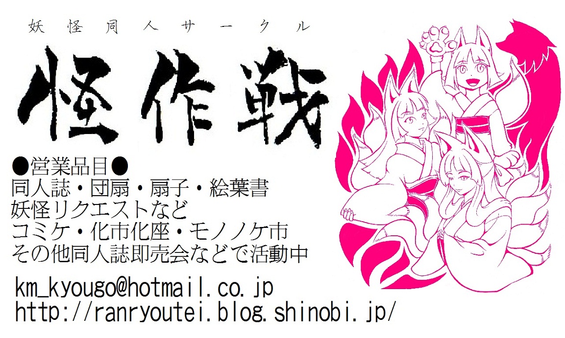 個人的には美少女の方が好きですが! ●既刊同人誌 妖怪写真集 第一巻、第二巻 200円 ●名刺 先日ご紹介した名刺を無料配布します。