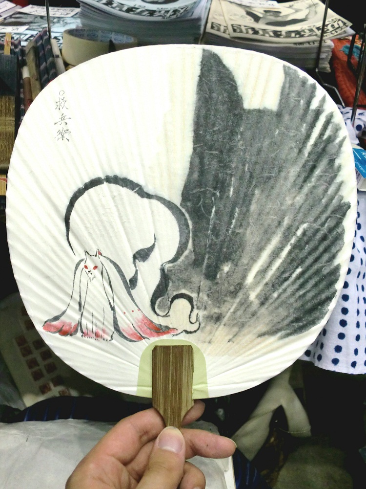 2011.07.29 Fri 19:40:48 7/31(日)モノノケ市頒布詳細 新作団扇紹介。今回は開始が遅くて夜まで開催しておりますのでお間違えなきよう…。 7/31(日)妖怪アートフリマ モノノケ市 <アクセス> 京都市上京区 大将軍商店街 http://www.kyotohyakki.com/web_0317/access.html 14:00 妖怪流しそうめん との事です。 怪作戦としての頒布予定は… ●妖怪リクエスト お好きな妖怪をその場でお描きします! ●妖怪団扇 全て手書きの一点物。 蘭陵亭作 たんころりん。