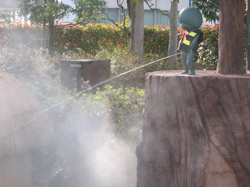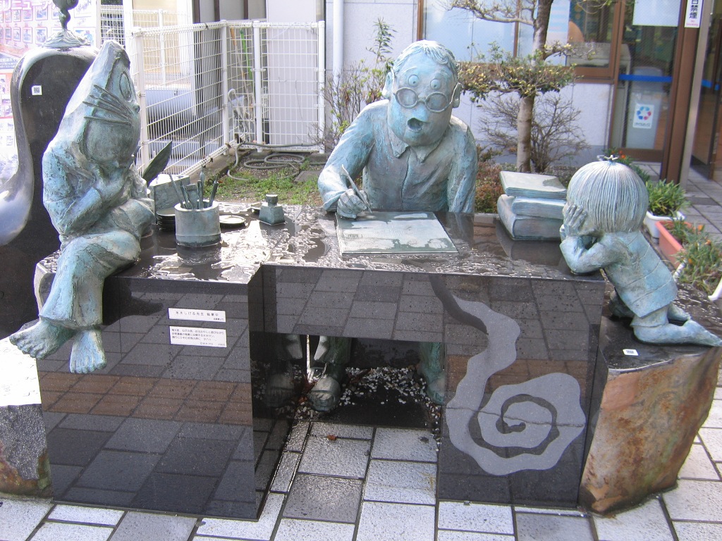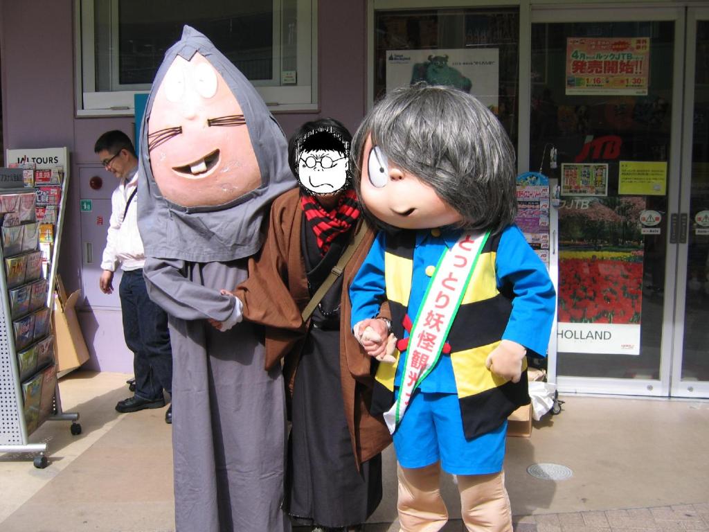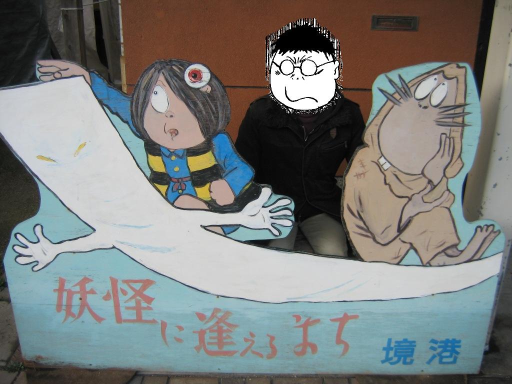 専門学校の中の小さめのイベントでしたが、色んな方が居て楽しかったです! ピクシブで見かけたあの方とか・・・><!! 偶に妖怪絵葉書の前で立ち止まって頂けると嬉しいですね。 ペーパーは作りすぎたな・・・。これも教訓。 5月に京都の大将軍商店街において、妖怪アートフリマなるものが開催されるようで。 これは是非参加せねば!ということで参加するつもりでおります。 5月4日のみの参加です。出店内容は、絵葉書と瓢箪と、シール等・・・? 瓢箪を知人からゲットしたので、其処に妖怪やらを描いてみようかと。 その他グッズも余裕があれば作りたいです。手書きになるので何とも・・・。 今回はグッズメインらしいのですが、イラスト集も作ろうかと思っています。 オフは難しいかな・・・。夏までには作りたいですがが。 あと名古屋のライブやコミティアの申し込みもしなければー。 2009.03.14 Sat 02:02:57 3月20日2009.03.14 Sat 01:40:37 境港ついに念願の境港へ行って来ました! 友人たちとの卒業旅行の一環で、愛媛、山口、鳥取と車で二泊五日の旅でした。 下関の宿を出て延々と五時間程、やっとのことで鳥取は境港へ。途中までずっと雨が降っていたのですが、境港に着く頃に丁度止んでくれました。 吃驚したのは、境港近辺の人達ののんびりした気風。 車も人も、それこそ時間自体がゆっくりと進んでいるような気持ちでした。 水木先生の「のんびり暮らしなさい」というお言葉も、まさにといった処。 水木ロードを探しながら境港を散策。 これが噂の妖怪倉庫! 目の前に来ると迫力が!! 港付近の自動販売機。 ビンカンのゴミ箱が凝っています。 水場(?)を発見。 良く見ると 鬼太郎の小便小僧が(笑)。 時間が来ると湯気が噴き出すようです。 そしてついにブロンズ像発見! 写真では良く見ていたけど、生で見られるとは!! 水木絵とは少し趣の違うぬっぺっぽう。 「ぬっぺふほふ」じゃなく「ぬっぺっぽう」でした。 駅前に水木先生発見! 網剪の真横に網が!! これは真逆演出? 通りは全く以て鬼太郎一色でした。 流石水木ロード。 鬼太郎たちと一緒。 一緒に行った友人たちは妖怪好きでも何でもなかったため、結局私一人ではしゃいでいた気が・・・。 銅像全部写真に撮ろうかと思いましたが、友人待たせるのも悪いし思いの外多くてまたの機会に。 心残りなのは記念館に行けなかった(時間が遅かったため)のと、お土産屋で余り買い物出来なかったこと。欲しいものが多すぎてセーブしてしまう・・・!次来るときはもっと境港にお金落としていくんだろうなー。いや地方活性化には良いことですが。それにしても妖怪グッズとか和柄グッズとか財布に優しくなさすぎる・・・><!! 念願の境港に行けて本当に嬉しかったです。 また今度は時間をたっぷり持って行きたいですな!愛知から4~5時間だから意外と近い気もしないでもない。 友人には「絶対に一人で運転しようとするなよ」と釘を刺されましたが・・・。 また機会があれば怪作戦で行きましょう! 追伸。 帰ってきた翌日、名古屋に鬼太郎が来てました(笑)。 2009.02.25 Wed 11:38:32 お疲れ様でしたッ! |