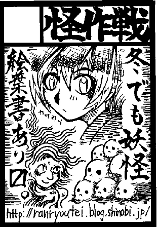 怪作戦こちらは妖怪サークル「怪作戦」のサイトです。 テラ、桂つかさ、蘭陵亭の三人で、東海地方を中心に、コミケや京都で活動中。主にサイトは蘭陵亭の絵と文です。 禁無断転載。PAGE | 48 49 50 51 52 53 | ADMIN | WRITE 2008.09.30 Tue 13:16:49 姑獲鳥2008.09.30 Tue 13:01:53 鉄鼠2008.09.10 Wed 15:20:55 河童百態2008.09.02 Tue 03:38:16 タンタンコロリン2008.09.02 Tue 03:16:32 狐火筆ペンで妖怪を描きだした頃の作品。 狐は稲荷神の眷属という側面、人を化かすものとして嫌われてきました。化けるときは、よく葉っぱや藻、人骨を使うとされています。人骨は男の骨で、狐は陰の気を持つ為、男の陽気を得て化けるのだとか。 昔話でも狸は馬鹿を見る存在ですが、狐は賢く、狡い生き物として描かれますね。不遇といえば不遇ですが狸の方が殺されたりすることは多い気が・・・。良くお稲荷様が狐と同一視されてますが、あくまで命婦神(御使い)であり、お稲荷様で祀られてるのは宇迦御魂神だったり保食神だったり。だから油揚げをお供えするのはある意味「社長に願い出る為に社長秘書に賄賂を渡すようなもの」だいうのはとある方の言。 固有の名前としては「篠塚狐」「おとら狐」「葛の葉狐」など。「おとら狐」などは地元愛知の狐なので馴染みが深いです。長篠なので直接は関係ないのですが。 良く擬人化もされます。 しかし先述の通り「それはお稲荷様じゃないんだ!」と声高に言いたい。 関係ないけどレナモンも可愛い。 2008.08.29 Fri 14:46:59 申し込み先週の話ですが、冬コミ申し込みを済ませました。 二回目ですが毎度書類不備が怖い・・・。大丈夫だよなあと。 受かると良いです。前回ので同人活動に目覚めてしまった。 また時間があったら地方イベントやなんかも出てみたいと思うのですが。あったら。 前回の夏のときは本当に沢山の方に来て頂けました。 こんなに妖怪好きさんがいらっしゃるなんて!と軽く感動。 リクエストで時間のない中描いた絵でも喜んで貰えると本当に嬉しかったです。 同時に妖怪絵をもっと精進しばければと喝。 冬は以前のオフ本と絵葉書の新作を持って行くつもりでいます。 団扇や扇子は季節じゃないので色紙になるのかな。 出来たらまた妖怪のリクエストもやりたいです。 まあ受かったらの話! また宜しくお願い致します! 2008.08.19 Tue 03:44:16 てすと |