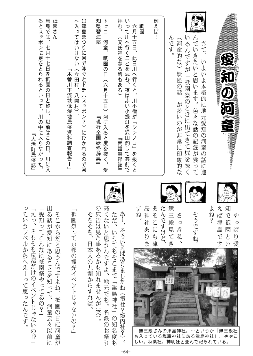 はい、今年も… 全国四千万の桂つかさファンの皆様、申し訳ありません。一年ぶりの桂つかさ更新ではなく、いつものテラでございます。(年賀イラストは桂つかさ作です)例年、コミケ評論島はド年末最終日ということで、桂はコミケに参加できずにお留守番。年が変わった瞬間に新年のブログ更新を行うのがパターンだったのですが、今年の冬コミは四日間開催。評論は三日目(12/30)ということで、久しぶりに桂も冬コミに参加出来たのでした。 …。…。…結局、1/3に更新するなら誰が更新しても良いのですが…。さて、話は変わりまして、まずはC97冬コミにて、怪作戦ブースにお立ち寄りくださった皆様に改めて御礼申し上げます。新刊『愛知の河童』は、お陰様を持ちまして、二時半ごろには完売と、これまで以上のご好評を頂きました。ありがとうございます。また、お買い求めいただけなかった方には誠に申し訳ありません。現在、通販も準備しておりますので、もう少々お待ちくださいませ。既刊は現在もメロンブックス様、コミックzin様などで通販購入可能です。https://www.melonbooks.co.jp/circle/index.php?circle_id=32815 https://shop.comiczin.jp/products/list.php?category_id=6364 *新刊もこのリンク先に追加されるはずです。2020年。直近のコミケは(受かれば)5月予定と、あまり時間がありませんので、しばらく製作できていなかった『妖怪写真集よりぬき編第二巻』を刊行できたらと考えております。その先は、妖怪写真集の新作に向かうか、愛知妖怪で何か違うことを考えるか…色々模索していきたいと思います。本年も引き続き、怪作戦をよろしくお願いいたします。2019.12.09 Mon 22:28:15 C97冬コミ新刊『愛知の河童』2019.10.19 Sat 09:58:30 10/19(土)モノノケ市なんかもう忙しくて全然更新できておりませんがテラなんでございますよ。 現在、10/19(土)10:00。 ちょっと天気が心配ですが、本日のモノノケ夜市出店予定です。 1700より大将軍八神社にて。 http://www.kyotohyakki.com/mononokeichi/list.html 夏の新刊『愛知妖怪雑録』京都初売りです!よろしくお願いいたします。 2019.07.22 Mon 22:38:01 夏の新刊校了しました。気が付けば二ヶ月以上経ってまってもうとるがね。 テラでございます。 コミケ当選告知もしとらんかったですが、 夏の新刊『愛知妖怪雑録』入稿いたしました! 地元である愛知の妖怪についての雑多な記録です。 現時点で、妖怪などを特集した冊子などに、あまり記載されていない妖怪、あるいは、記載されているが新たな知見のあるもの、初出が遡るもの、情報が増えたり補足できるものなどを収録しております。愛知の妖怪情報を大幅に補足する一冊です! 雑多な内容なので、まーちょっと気楽に作るつもりだったのですが…結局安定の100頁超え。 本文136頁、800円で頒布予定でございます。 内容や夏の日程は改めて告知したいと思いますが、とりあえず色々な日程を駆け足で。 〇8/3(土)~8/18(日) 愛知百鬼夜行展との連動企画、 正文館書店本店(東片端)にて開催される『百鬼露店』に、怪作戦の同人誌も置かせていただきます。一般書店で怪作戦本の販売ですよ! *新刊が8/3(土)に間に合うかは未定ですが、コミケ前でも間に合えば搬入します。 http://www.shobunkanshoten.co.jp/honten.php https://100ki.hakofo.com/events/ 〇8/11(日)コミケ三日目 西し11b 怪作戦ブースにて頒布 https://webcatalog-free.circle.ms/Circle/14506759 〇8/24(土)25(日) 深川お化け縁日 深川お化け縁日 第一会場(深川江戸資料館レクホール)にて頒布。17:00~20:00 https://www.kcf.or.jp/fukagawa/access/ 駆け足ですが、こんな諸々頑張って参ります! 2019.05.14 Tue 22:07:46 5/25(土)モノノケ市に出店します。気が付けば三ヶ月も更新しとりませんね…。 テラでございます。ご無沙汰しております。 …冬は屋外イベント少ないから…。 令和最初のモノノケ市! 怪作戦出店いたします! 今回は会場がいつもと違って 京都佛立ミュージアム だそうですよ。(大将軍八神社のちょい東) http://www.kyotohyakki.com/mononokeichi/joinmononoke.html# 記 5/25(土) 10:00~17:00 モノノケ市 IN 北野ツクモール 冬コミ新刊「怪作戦グラフティ」も、モノノケ市初売りですよ! ただ、今の所、残念ながら、蘭陵亭のみ参加予定にて、桂、テラは参加できない予定となります。残念。残念み。 令和年代も怪作戦をよろしくお願いいたします。 2019.02.09 Sat 21:41:33 C96夏コミ申し込みをしました!パソコンの引っ越し、だいたいなんとなく…終わった感じで。 テラでございます。 ようやくWIN10になったし重くない!容量もOK! 環境も整えて新刊をまた、作っていきたいと思います。 C96夏コミ申し込みいたしました。 今回は初の四日間開催。評論は、予定通りなら三日目、8/11(日)になるはずです。 無事、受かりますように…。 新刊は、まだ模索中ですが、愛知妖怪画談シリーズの新作は冬を射程に狙って、夏は、とりあえずここまでに集めて未整理の愛知妖怪情報を、とりあえず集めた『愛知妖怪雑録(仮)』あたり、できないかと考えております。『妖怪写真集よりぬき編』の第二巻も作りたいで